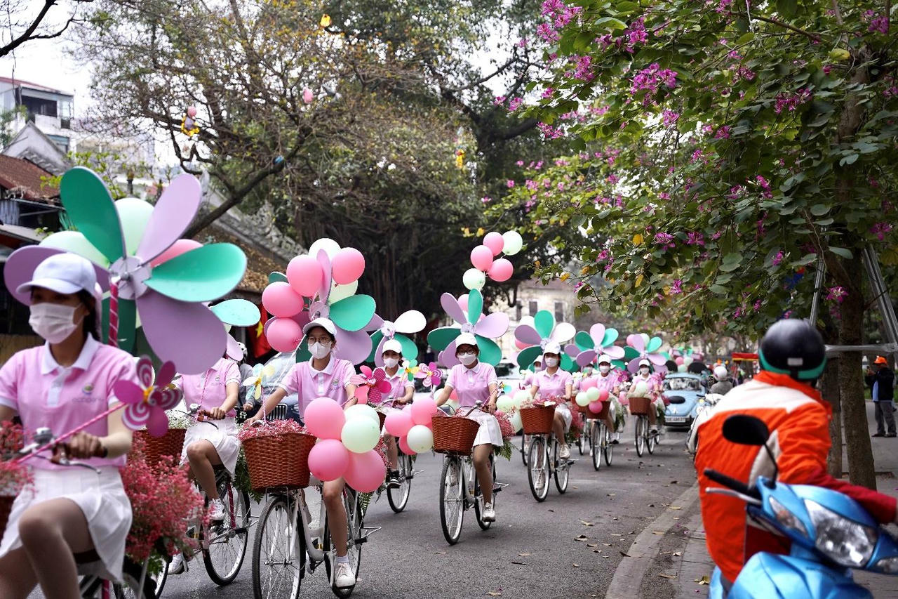 Sáng ngày 8/3, người dân Hà Nội và KĐT Ecopark không giấu được sự thích thú và ngạc nhiên khi những cung đường bỗng biến thành khu vườn cổ tích di động với sự xuất hiện của hàng nghìn chiếc chong chóng rực sắc màu.