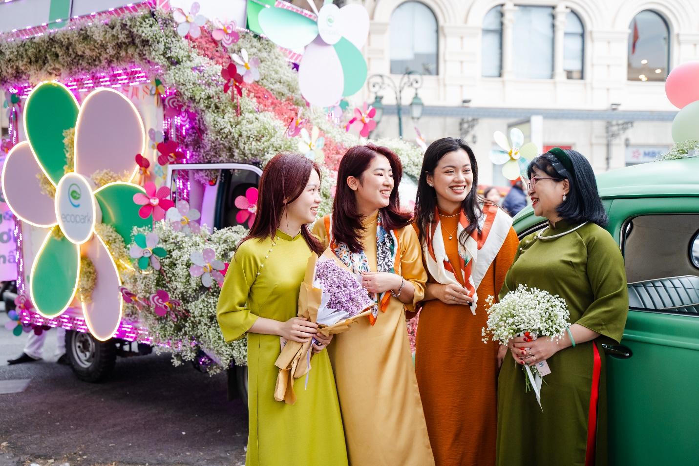 "Khu vườn cổ tích" khổng lồ này được Tập đoàn Ecopark tạo nên bởi hàng trăm bông hoa cùng chong chóng, và được trang trí trên những chiếc xe đạp, xe cổ và xe tải nhỏ xinh xắn.