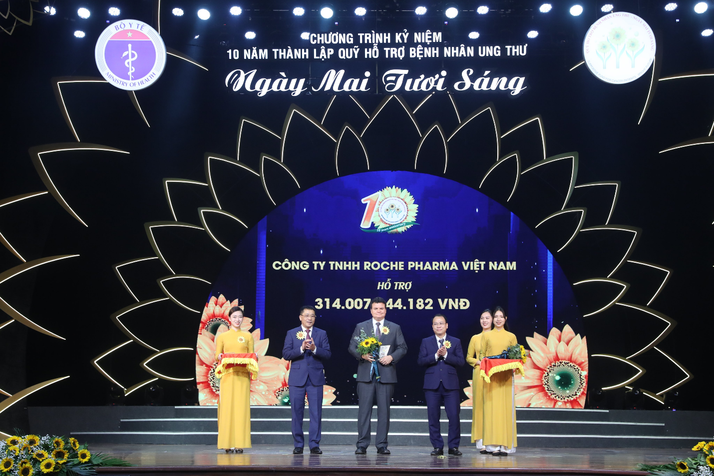“Là tập đoàn hàng đầu thế giới về chăm sóc sức khỏe, Roche luôn tích cực tham gia các chương trình hợp tác giúp cải thiện chất lượng chăm sóc, điều trị cho người bệnh với chi phí thấp hơn cho toàn xã hội. Chúng tôi rất vinh dự được đồng hành cùng Quỹ hỗ trợ bệnh nhân ung thư - Ngày mai tươi sáng trong suốt mười năm qua cũng như trong nhiều năm sắp tới. Bằng khen nhận được ngày hôm nay là nguồn động viên, khích lệ rất lớn với toàn thể nhân viên công ty tại Việt Nam đang ngày ngày nỗ lực làm việc vì người bệnh và ngành y tế”, ông Lennor Carrillo, Tổng Giám đốc công ty Roche Pharma Việt Nam chia sẻ.