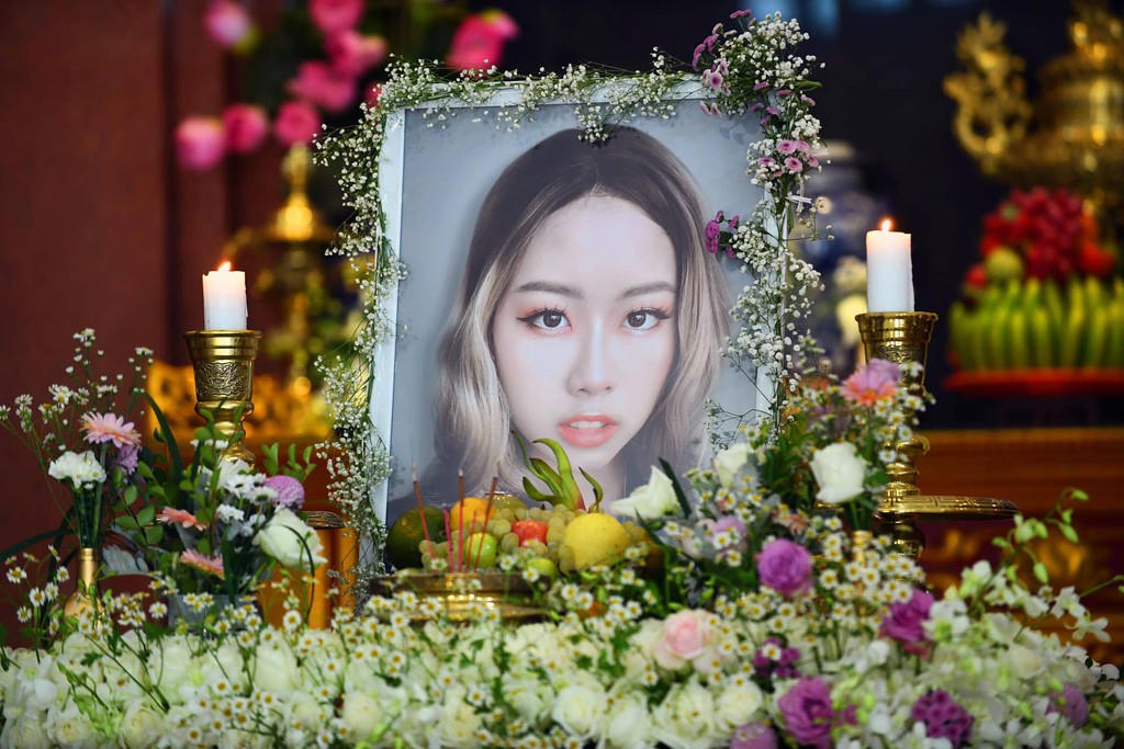 Lễ tang của cô gái trẻ 20 tuổi cũng ngập trong hoa trắng và nến. Giai điệu ca khúc "Cảm ơn con nhé" từ bộ phim "Về nhà đi con" được sử dụng làm nền trong đám tang khiến không khí bớt u buồn hơn nhưng vẫn khiến những người đến viếng vô cùng xúc động.