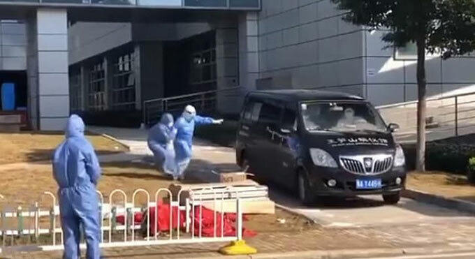 Rơi nước mắt cảnh vợ giám đốc Vũ Hán chạy theo xe chở thi thể chồng