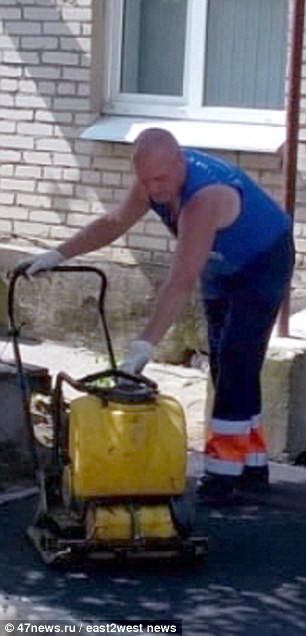 Hai công nhân này nhìn thấy vụ việc trong lúc nghỉ ngơi sau khi rải nhựa đường bên ngoài khu căn hộ nơi bé trai này sinh sống.