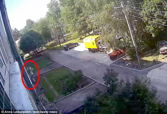 Anh Dmitry, 47 tuổi, và Vadim, 30 tuổi, phát hiện Danya sắp rơi xuống sau khi bé trai này leo lên bàn rồi mở chốt cửa trong lúc bà ngoại không để ý. Hình ảnh từ camera giám sát cho thấy bé trai 3 tuổi rơi từ độ cao 12 m ở thị trấn Dzerzhinsk – Nga hôm 17/7.
