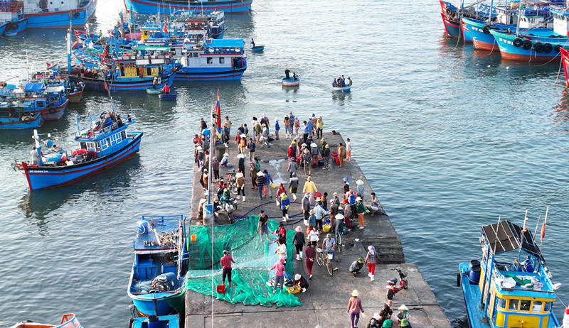 Không khí ngư trường đầu năm tại Ninh Thuận mang nhịp sống hối hả của người dân miền biển.