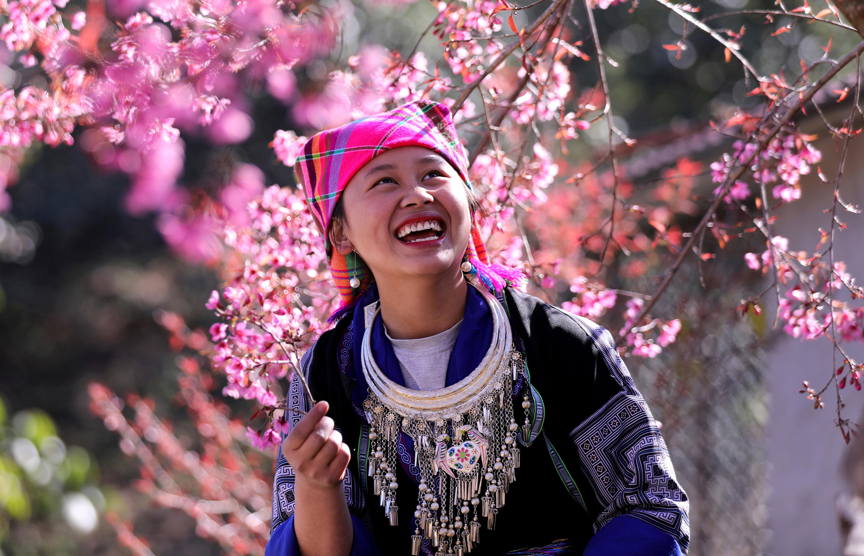 Nét xuân an yên, nhẹ nhàng, thư thái trở thành "lá bùa" kéo du khách đến vùng đất của sơn nữ gùi lưng hoa cải vàng, nép mình bên Tớ dày. Ảnh: Thanh Miền. |