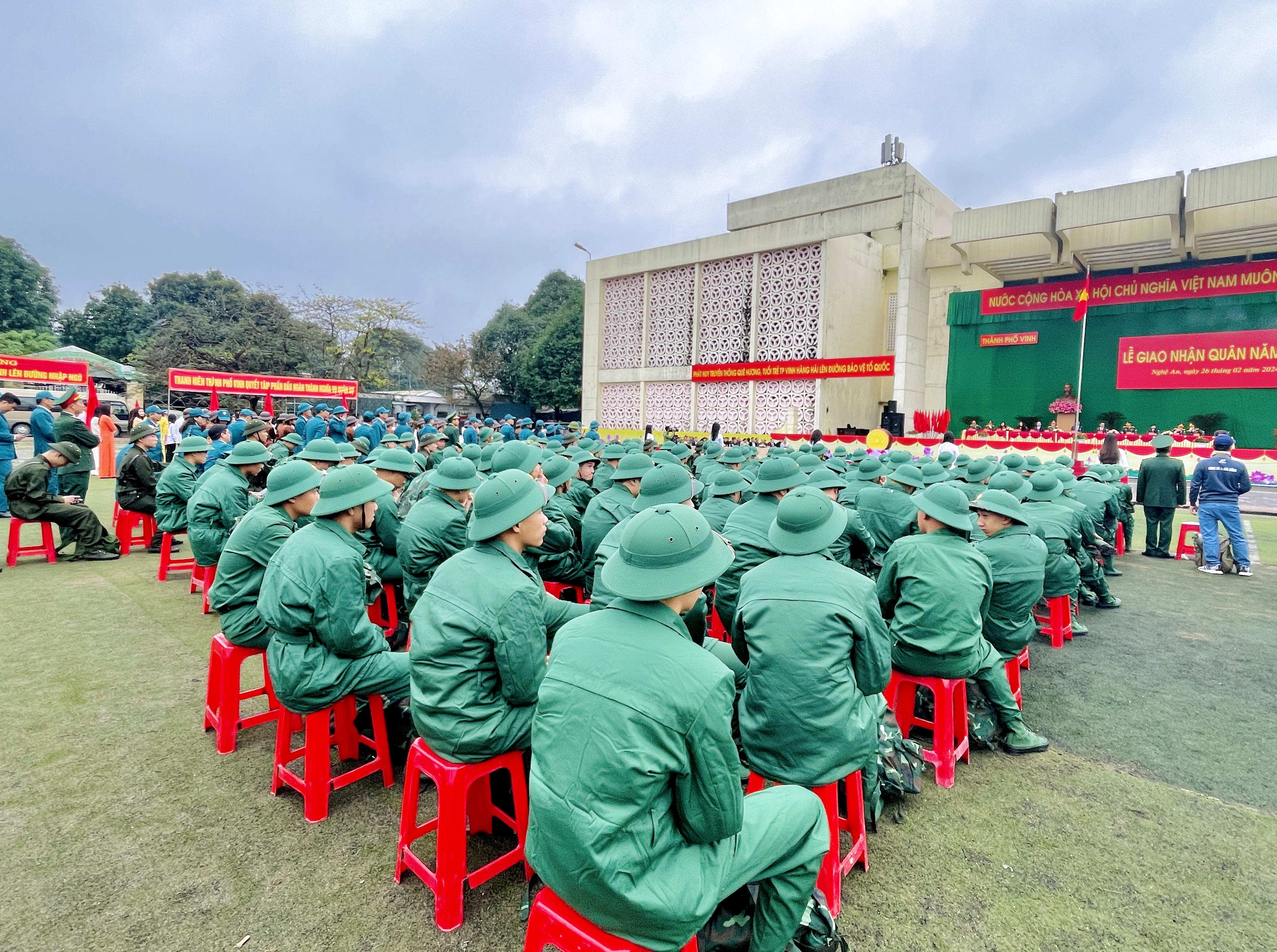 | Dịp này, TP Vinh có 147 chiến sỹ nhập ngũ. Ảnh: Thiên Ý |