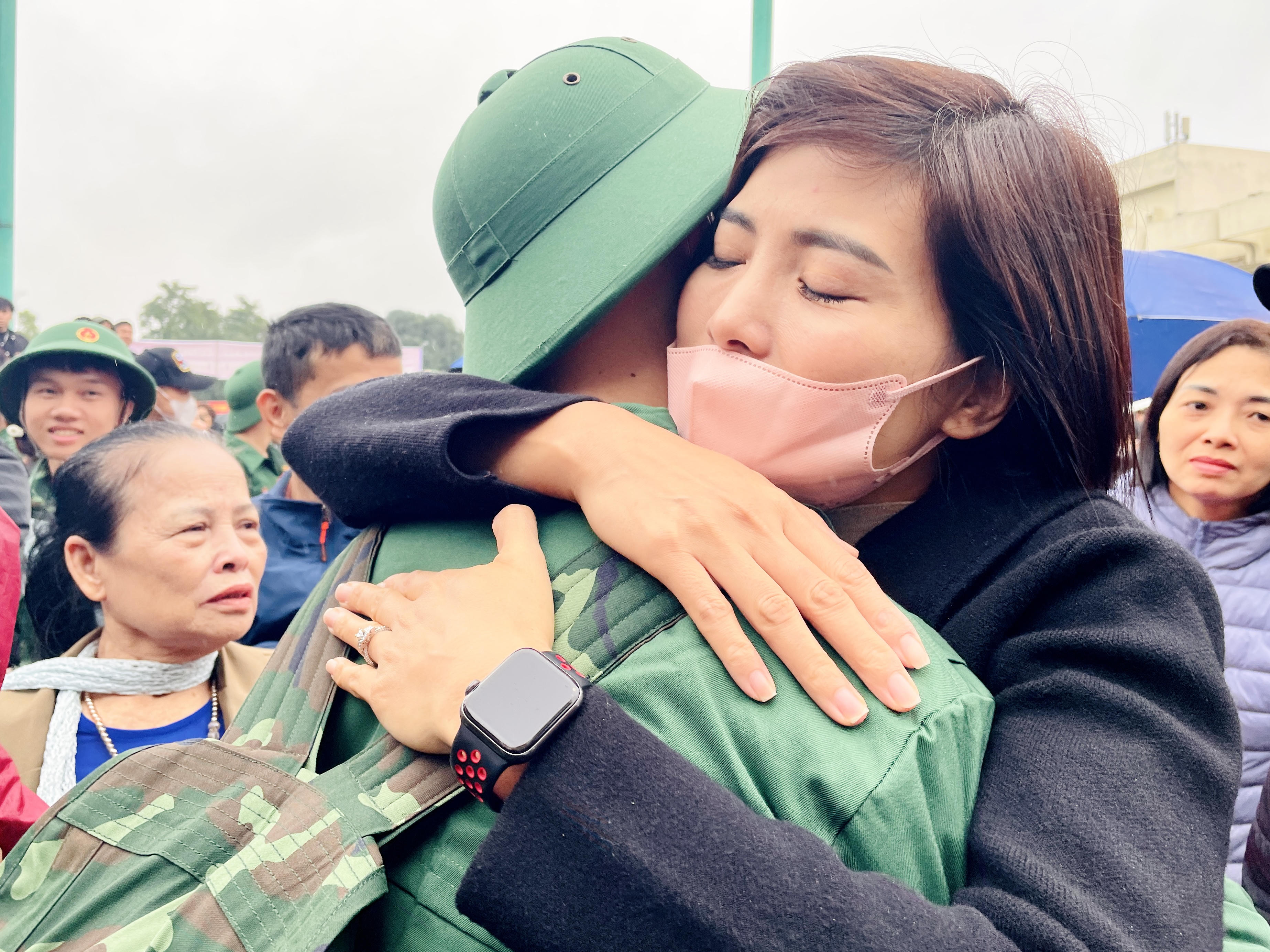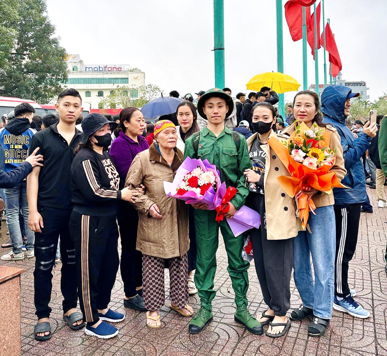 Nhiều người gác lại công việc để tới động viên người thân đi nhập ngũ. |
