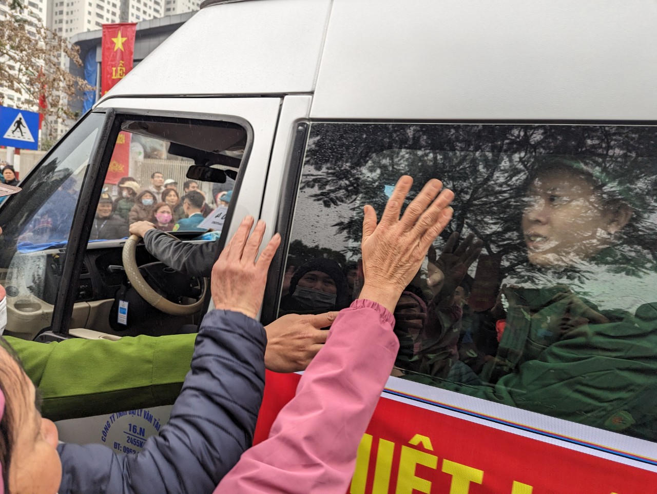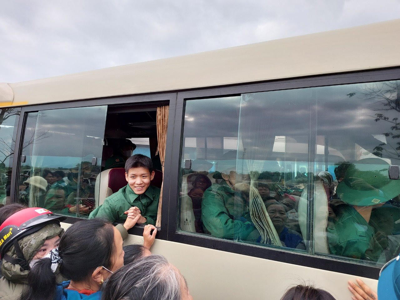 | Sau khi nói lời tạm biệt với người thân, các chiến sỹ tập trung ra xe để di chuyển tới đơn vị. Ảnh: Thiên Ý |
