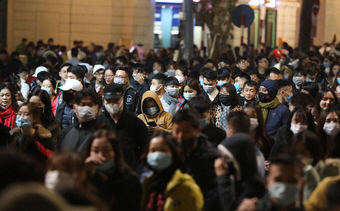 Đường phố trung tâm Hà Nội chật kín khi thời khắc chuyển giao năm mới đến gần. Ảnh: Zing.vn