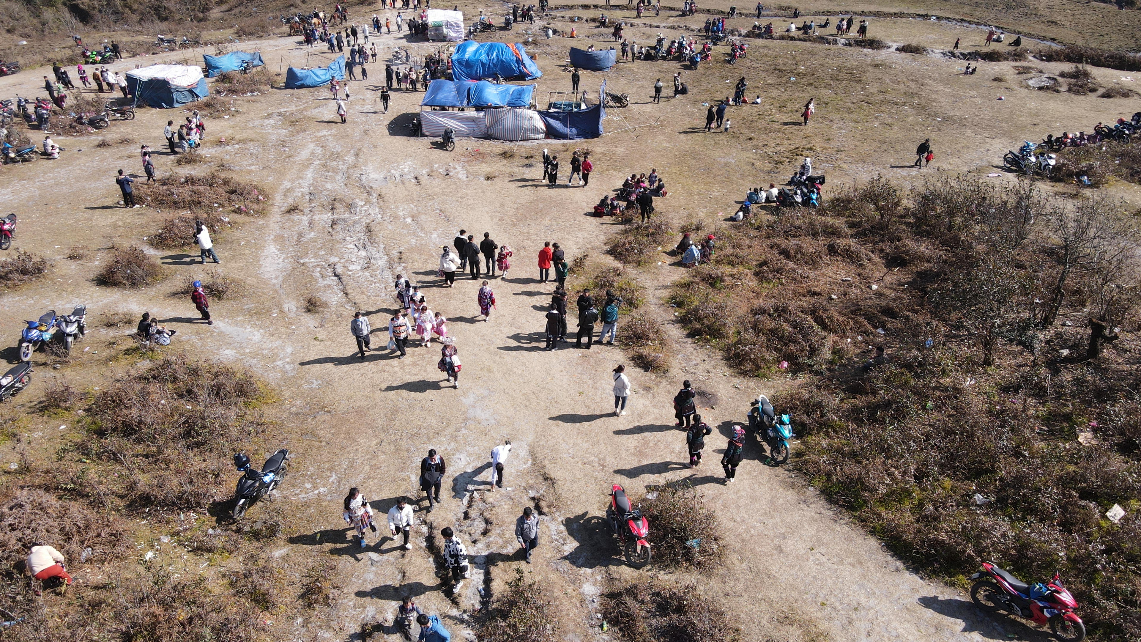Từ sáng sớm, những con đường mòn quanh co trên núi đã rộn ràng tiếng nói cười. Các cô gái Hà Nhì diện váy áo rực rỡ, tóc cuộn thành búi cầu kỳ, má ửng hồng trong tiết trời se lạnh. Các chàng trai Mông khoác lên mình những bộ quần áo truyền thống, tay cầm khèn, sáo, háo hức du xuân.