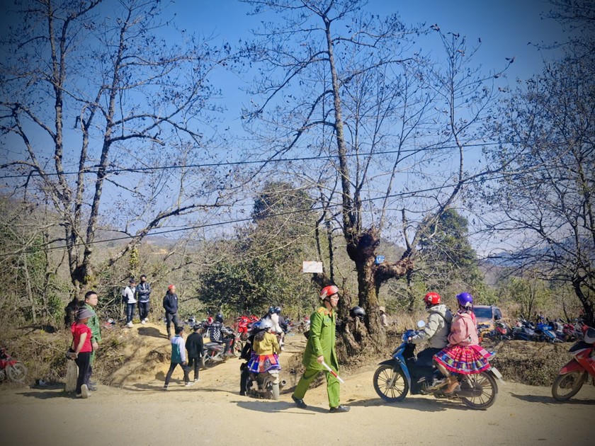Từ sáng sớm mùng 1 Tết, Công an xã Y Tý đã huy động 100% lực lượng về khu vực Phìn Hồ sẵn sàng hỗ trợ người dân du xuân. |