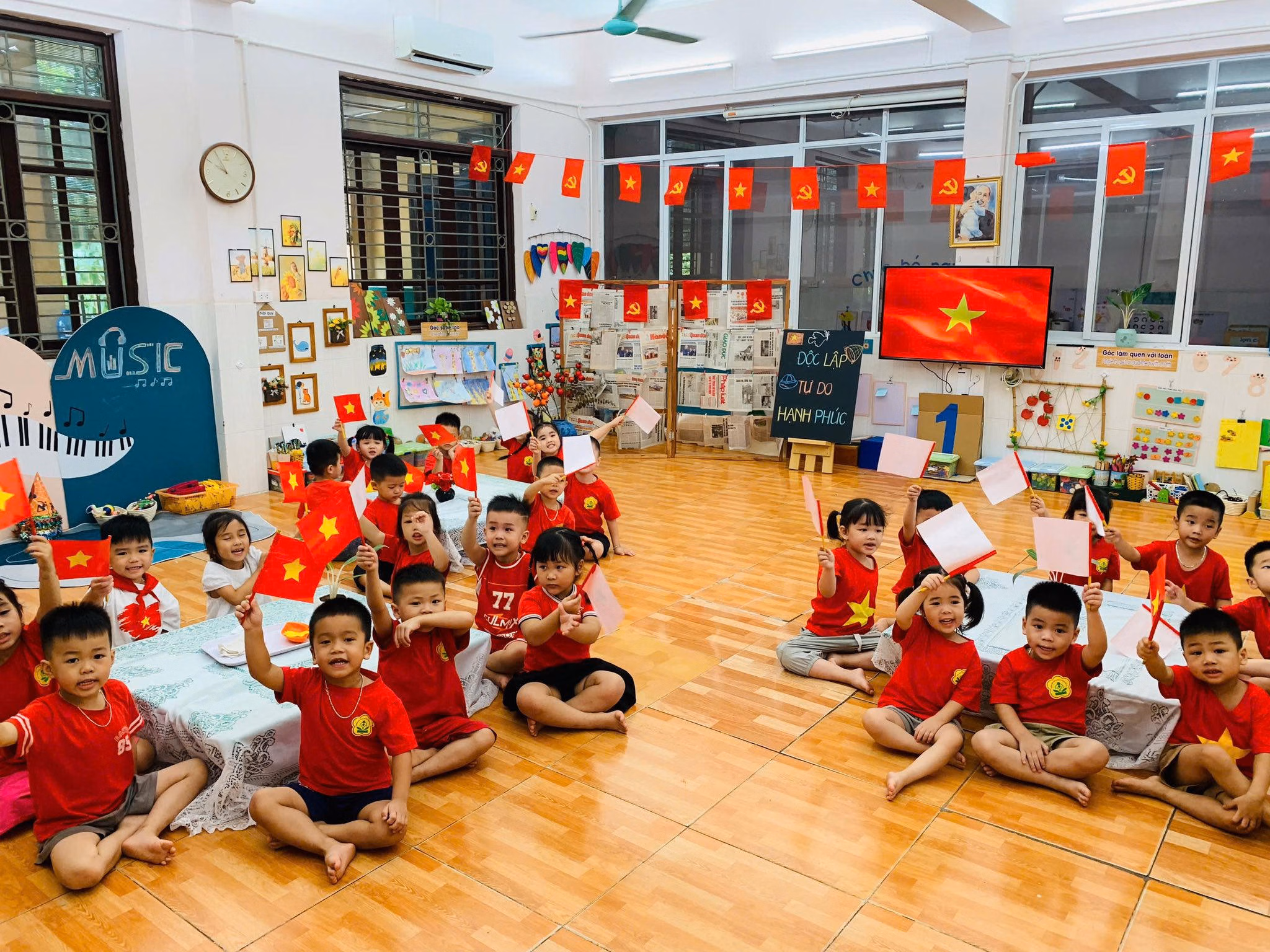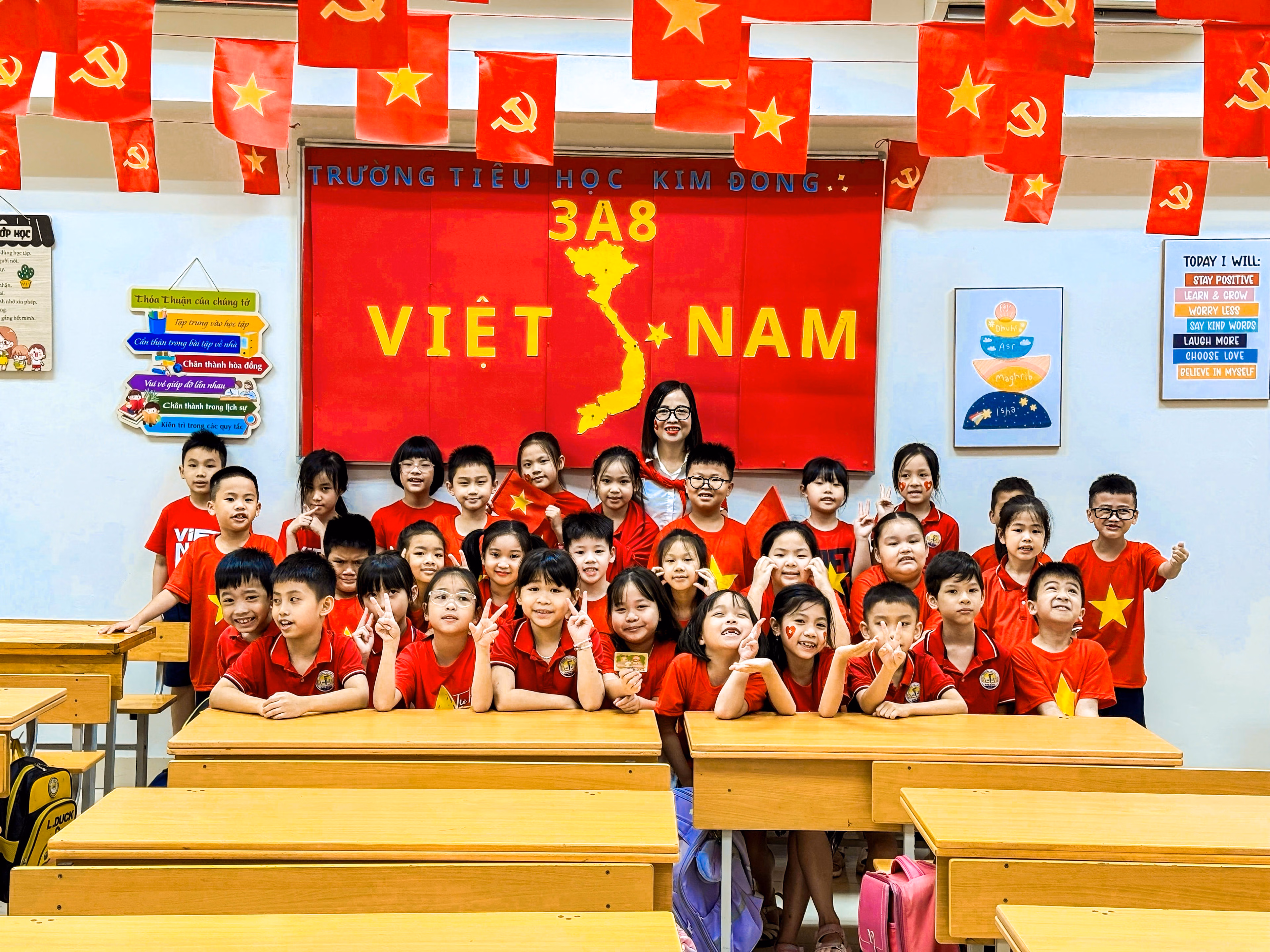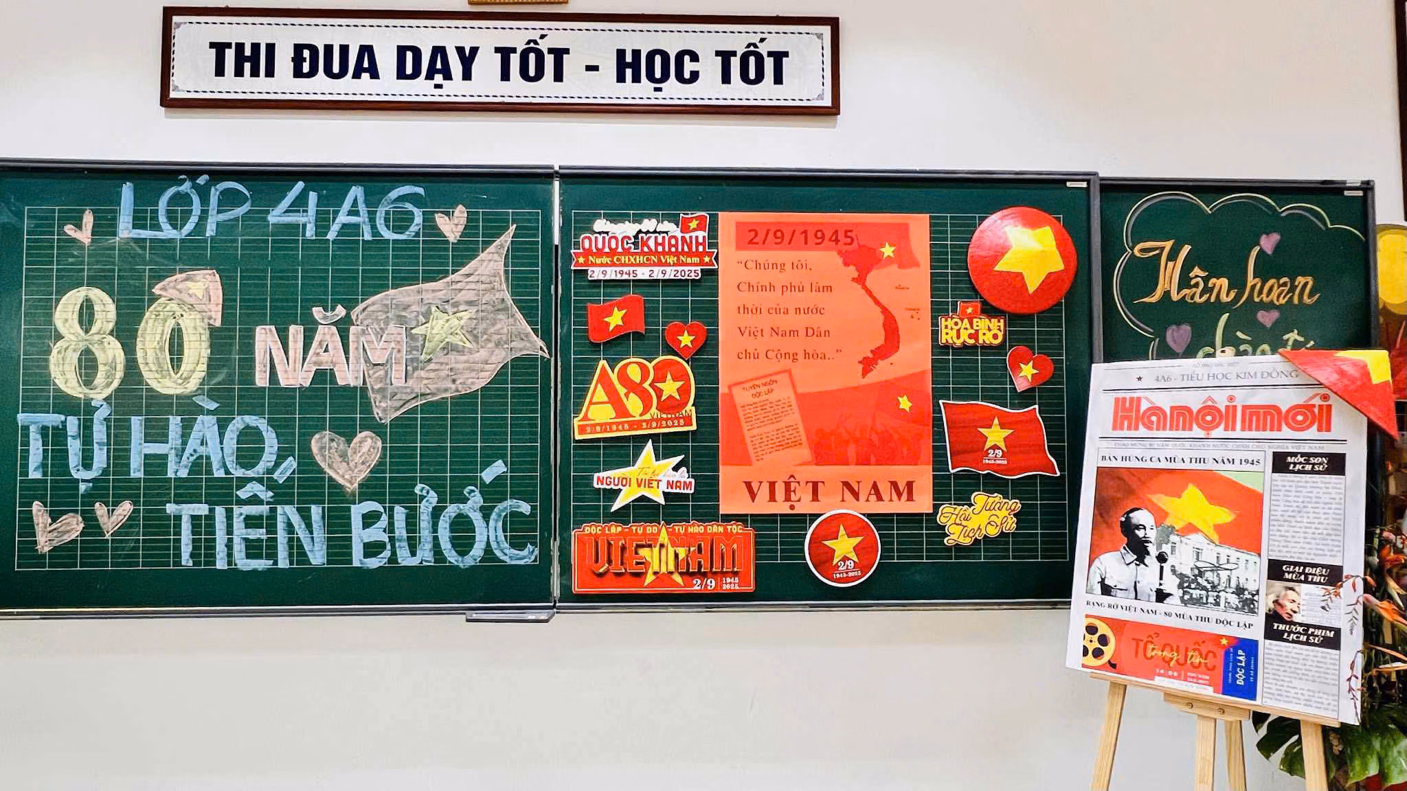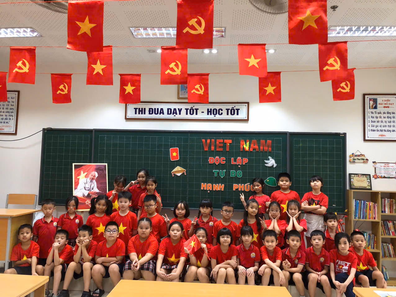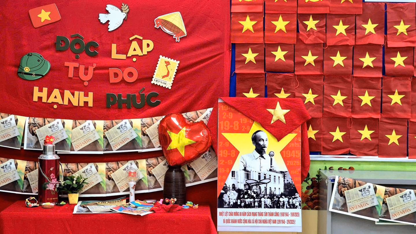 Một số trường học, các thầy cô còn sáng tạo khu vực “góc check-in Tổ quốc” với bản đồ Việt Nam, ảnh Bác Hồ và cờ đỏ sao vàng cho các em học sinh. Các em không chỉ chụp hình, mà còn gửi gắm những lời chúc, lời hứa giữ gìn hòa bình và phát triển đất nước, tạo nên một không gian vừa trang trọng, vừa gợi nhắc tình yêu quê hương một cách gần gũi.