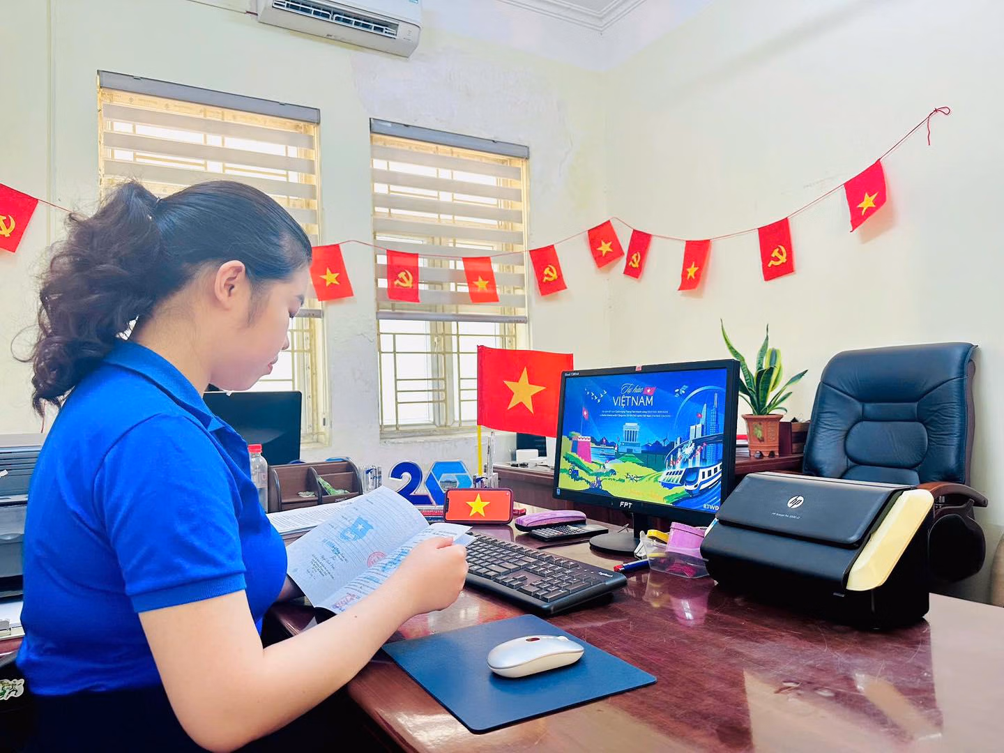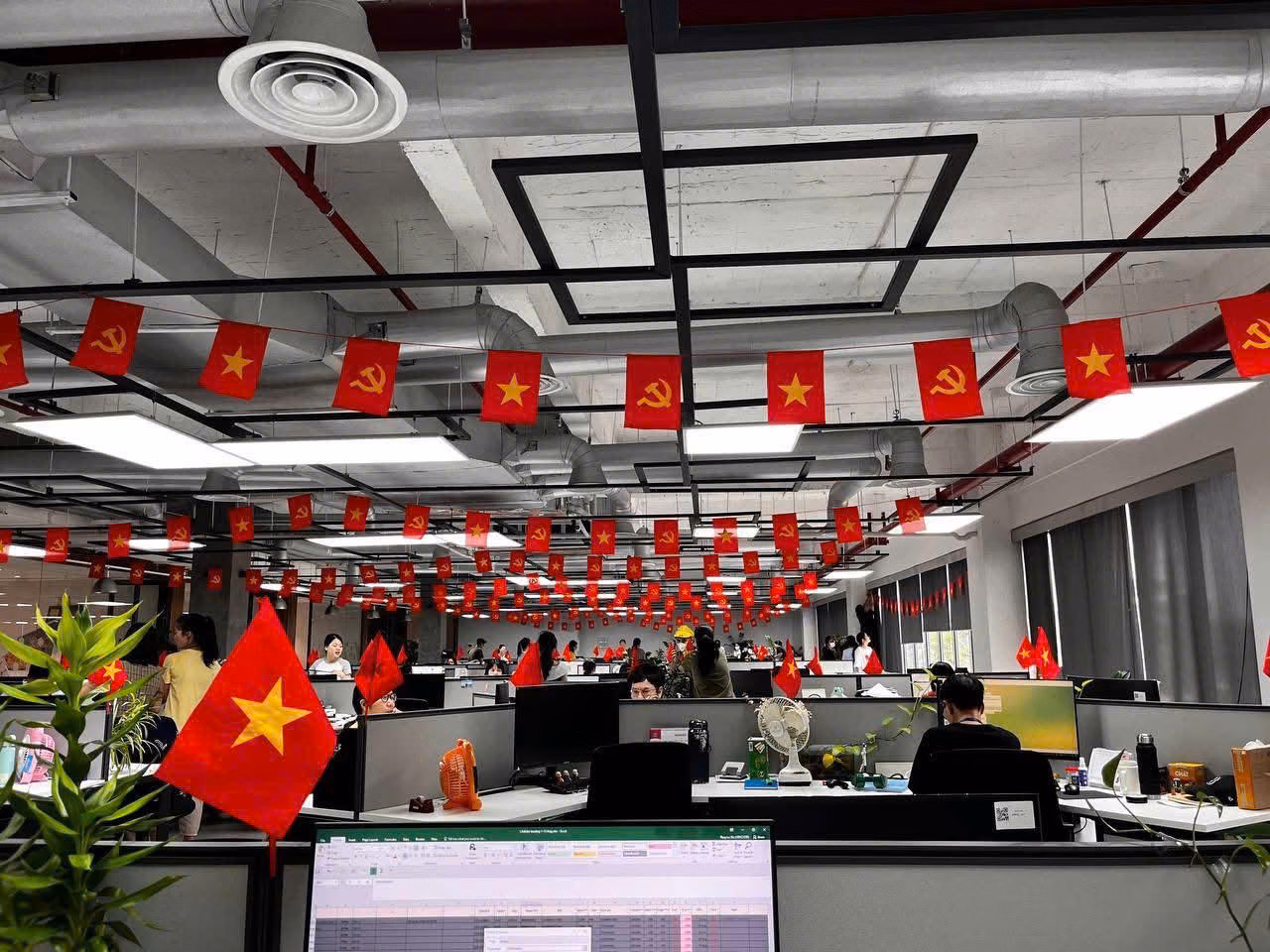 Tại các công sở, công ty, công tác trang trí, tuyên truyền cho Đại lễ 2/9 cũng được triển khai từ sớm. Điều này không chỉ làm đẹp không gian làm việc, mà còn góp phần thúc đẩy tinh thần làm việc hăng hái, sôi nổi của cán bộ, công chức.