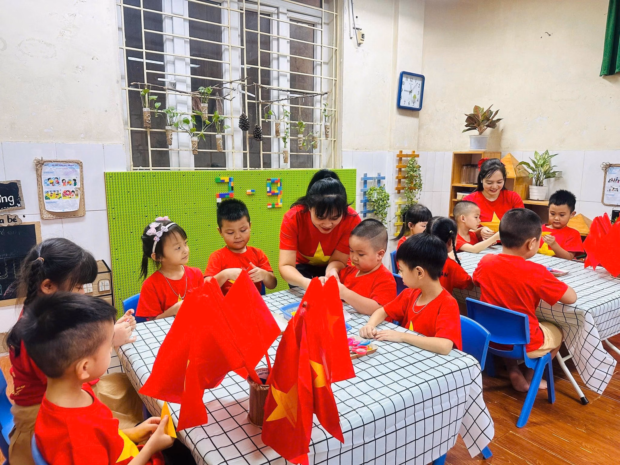Chào mừng lễ kỷ niệm 80 năm Quốc khánh 2/9, nhóm phụ huynh học sinh trường tiểu học Kim Đồng, phường Giảng Võ, Hà Nội, trang trí các lớp học với nhiều tiểu cảnh sinh động.