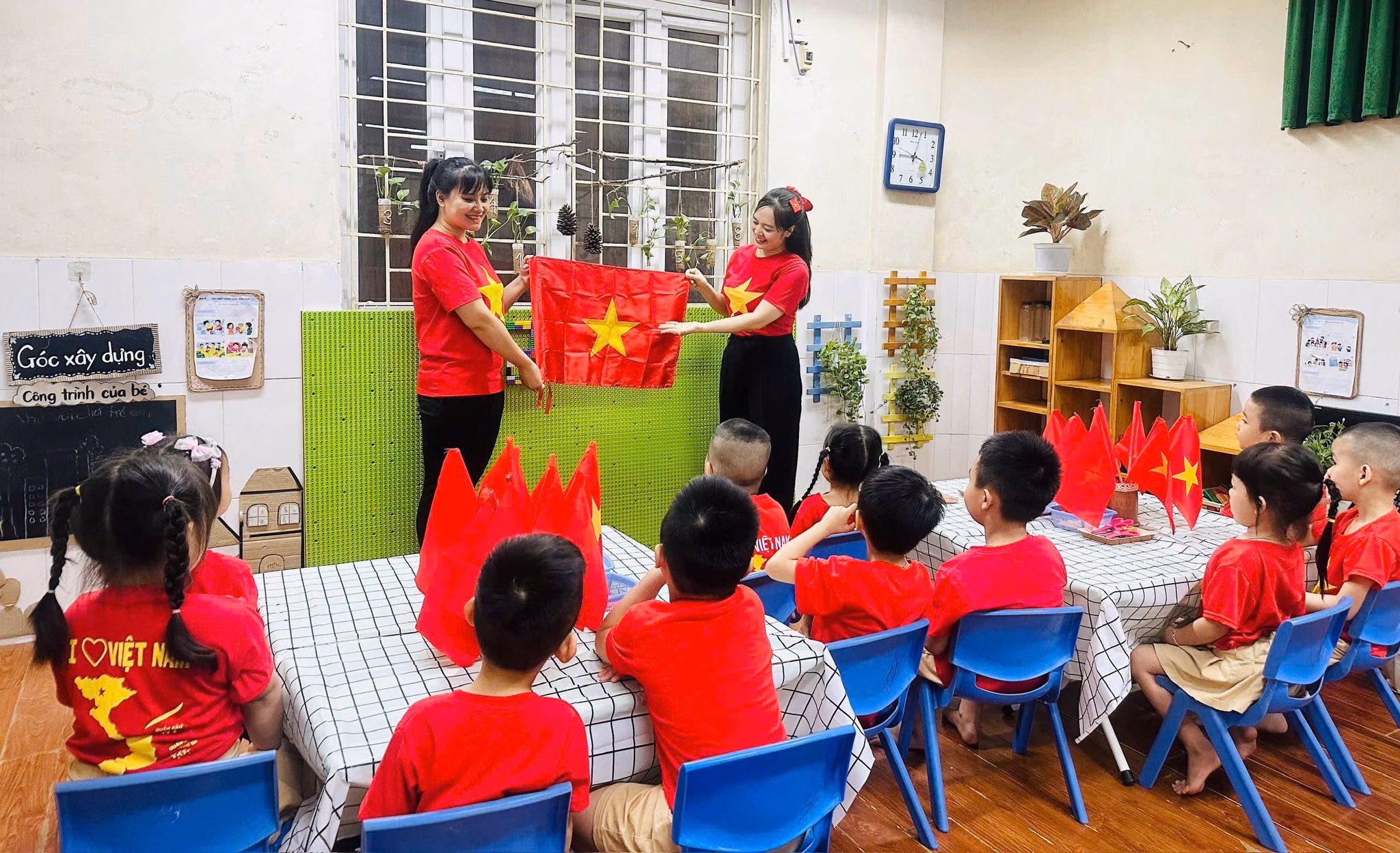 Tại Trường Tiểu học I-sắc Niu-tơn (phường Nghĩa Đô - TP Hà Nội), học sinh khối 2 đã cùng nhau tham gia hoạt động đầy ý nghĩa mang tên “Chong chóng Tôi yêu Việt Nam”. Các em học sinh đã cùng nhau tạo ra những chiếc chong chóng in mang sắc đỏ và vàng của lá cờ Tổ quốc, điểm thêm những khẩu hiệu ý nghĩa. Hoạt động không chỉ mang đến cho học sinh những phút giây trải nghiệm vui tươi mà còn góp phần nuôi dưỡng tình yêu Tổ quốc, khơi dậy niềm tự hào dân tộc.