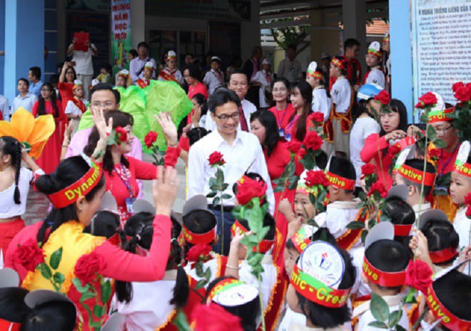 Phó Thủ tướng Chính phủ Vũ Đức Đam đã tới dự khai giảng, chúc mừng thầy, cô và trò học sinh trường Tiểu học Lê Văn Tám, Quận 7, TP HCM.