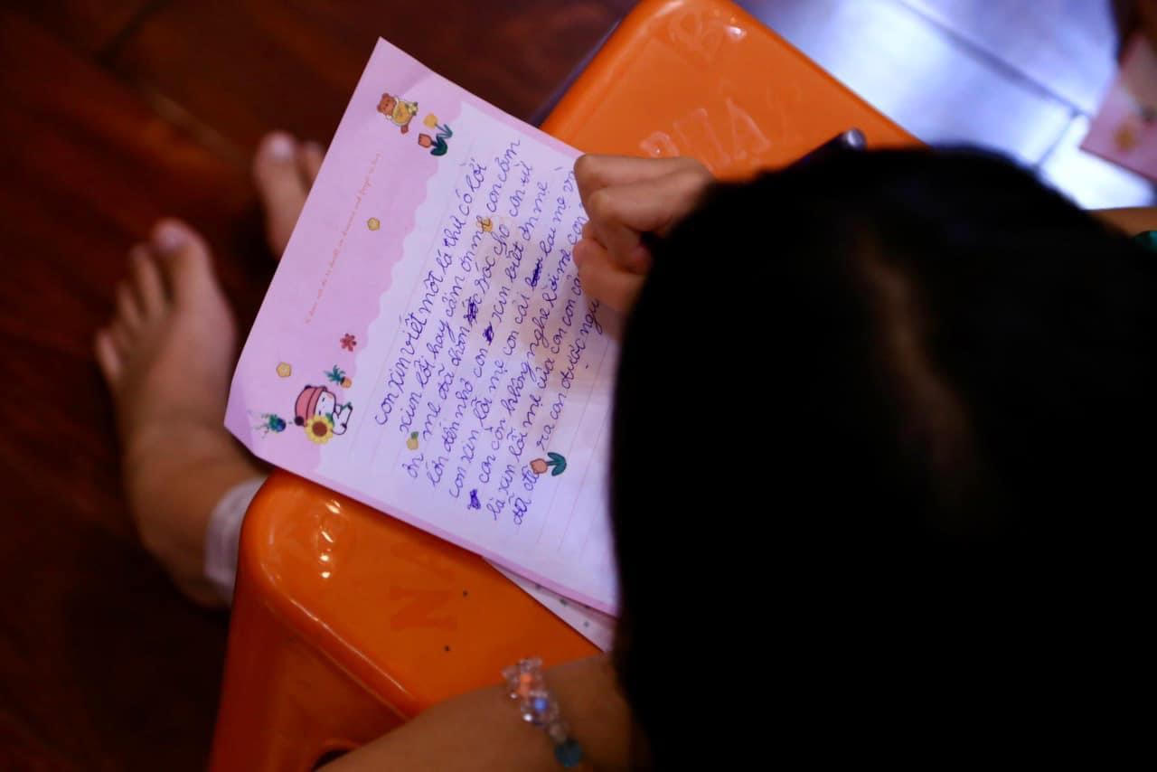 Sau đó, em nhỏ đã viết những lá thư cảm ơn đến đấng sinh thành bằng những nét chữ còn vụng về nhưng chứa chan tình cảm.