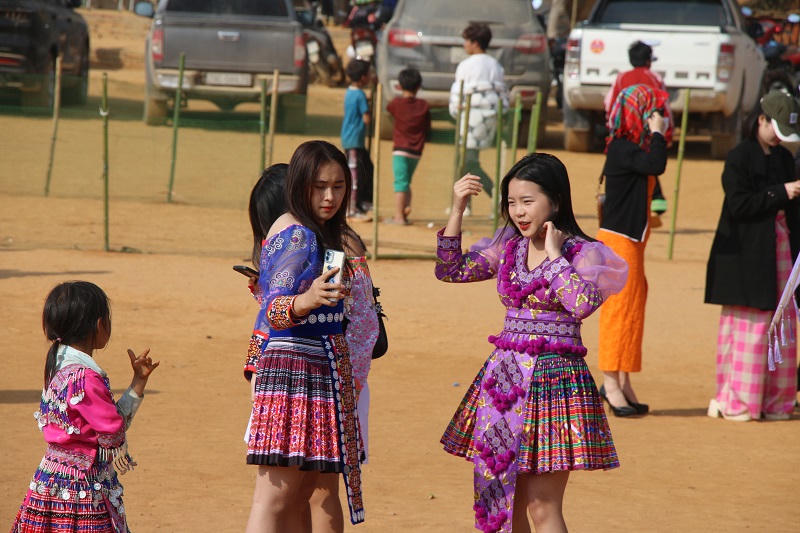 Ngay từ sớm, trên các ngả đường vào xã Ngọc Chiến (Mường La, Sơn La) từng đoàn người tấp nập, di chuyển vào nơi diễn ra ngày hội. Hình ảnh những chàng trai, cô gái Thái, Mông… với trang phục đặc trưng riêng có, hòa quyện tạo nên sắc màu rực rỡ. Những bước dân thoăn thoắt xen lẫn tiếng cười, tiếng nói xóa tan bầu không khí yên tĩnh nơi miền sơn cước.