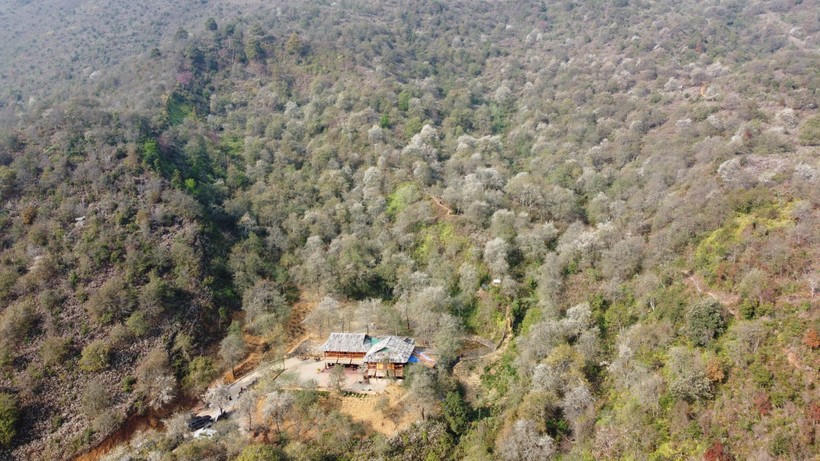 Hoa Sơn tra nở trắng muốt bên sườn đồi, ngọn núi.