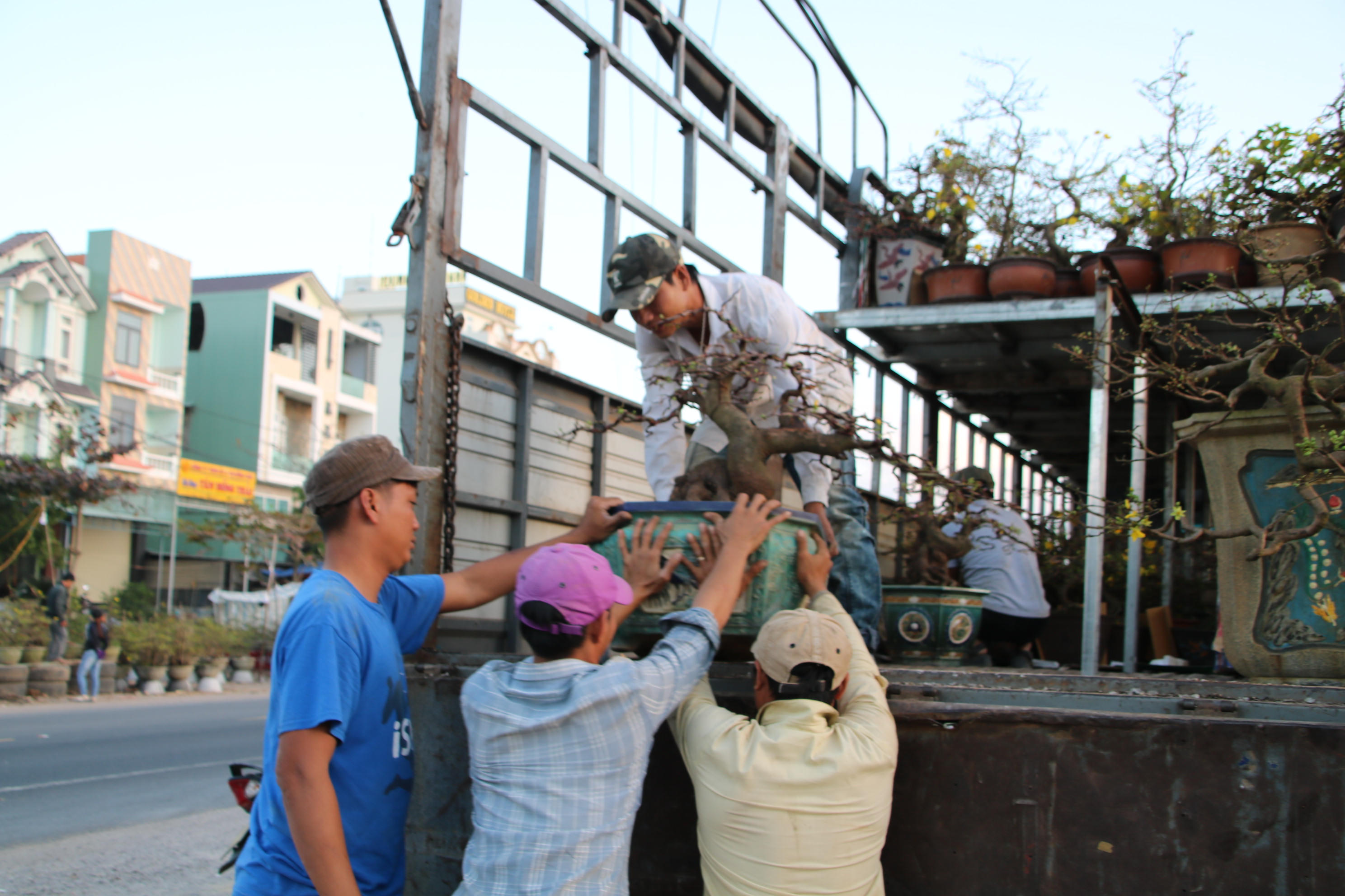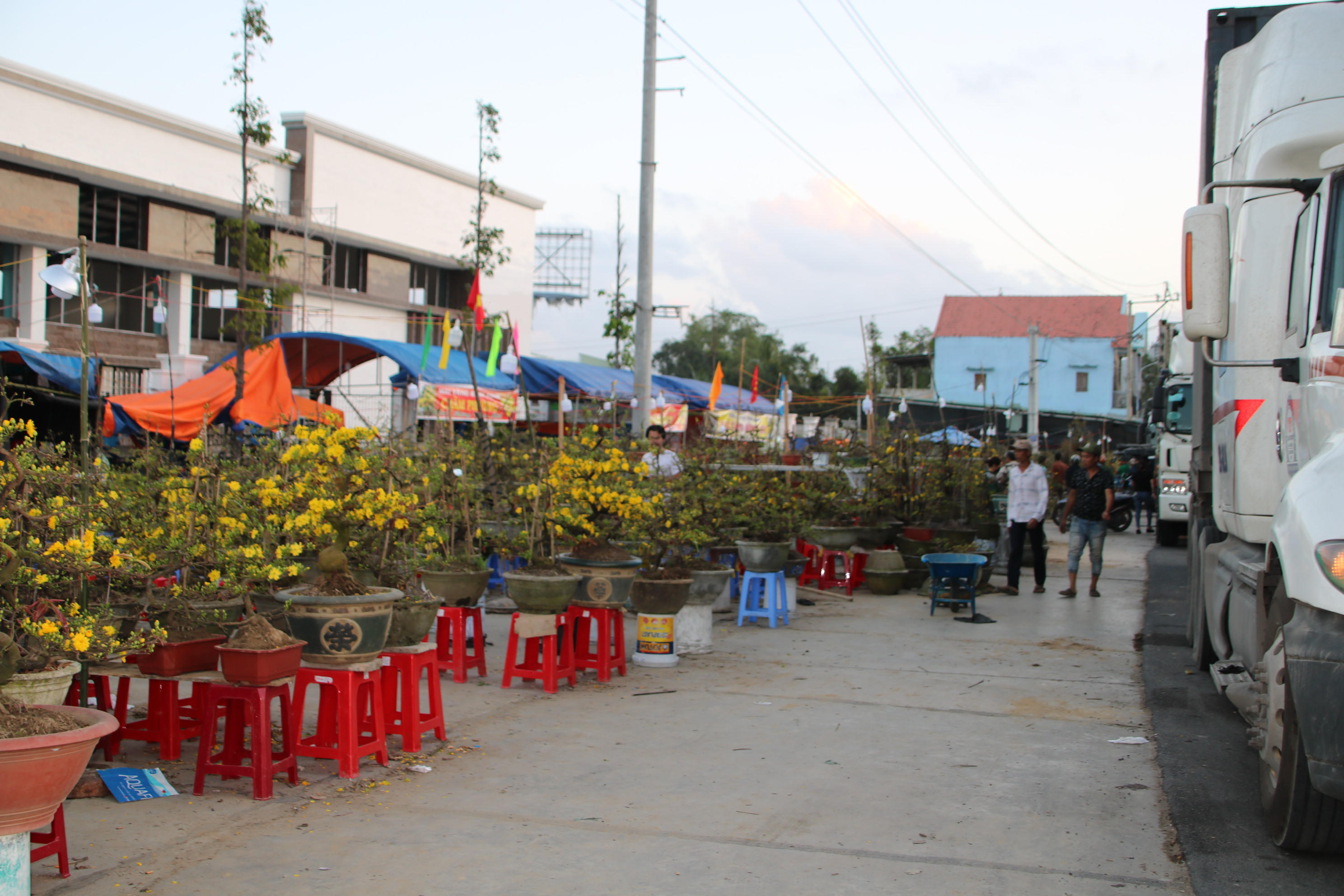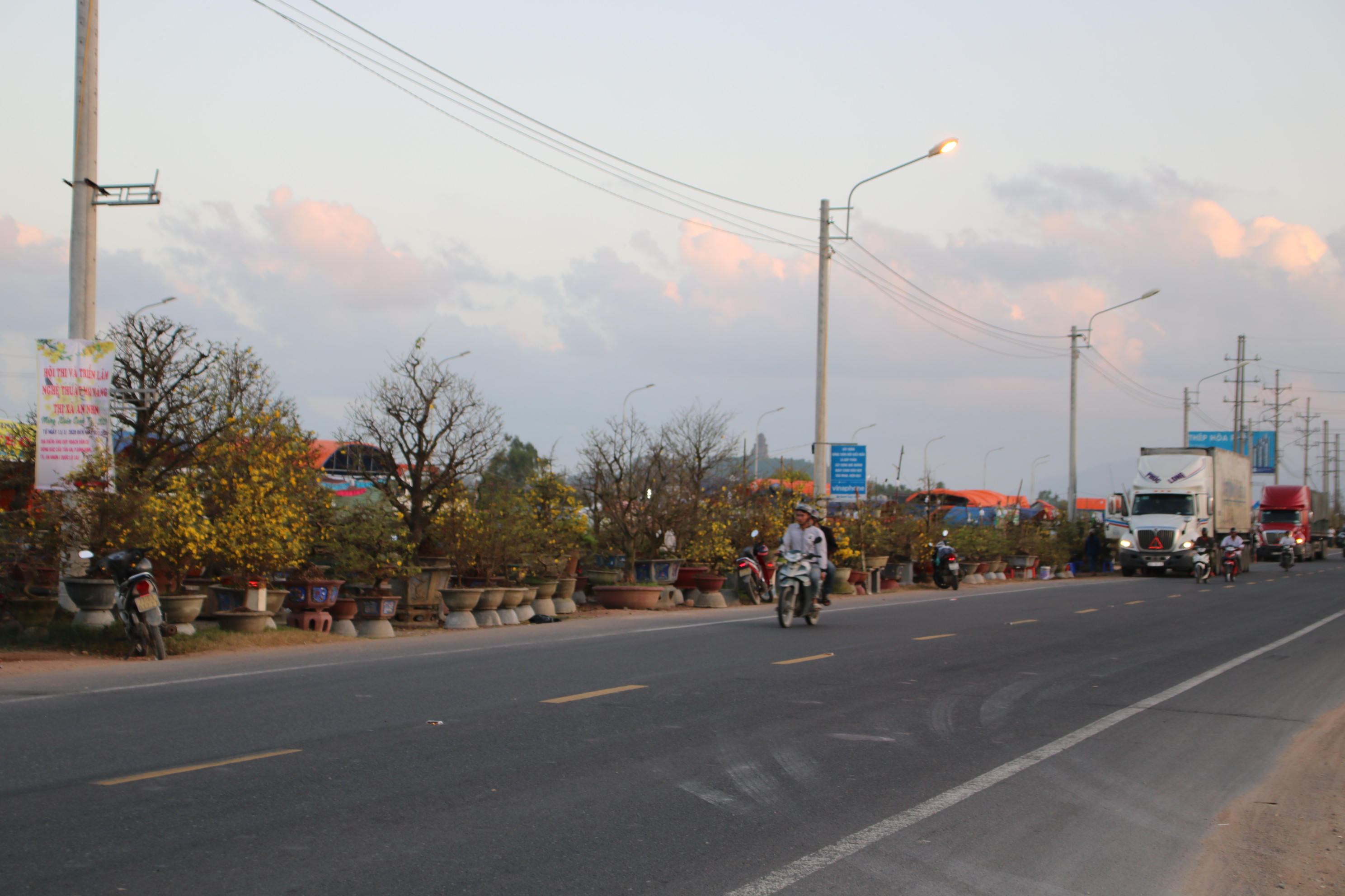 Những ngày này, không khí mua bán mai ở các nhà vườn, dọc các tuyến đường quốc lộ, tỉnh lộ ở thị xã An Nhơn - nơi được mệnh danh là thủ phủ mai vàng miền Trung đang rộn ràng, náo nhiệt. Tiếng cười nói, chào mời hàng, ngã giá rôm rả. Hàng trăm chuyến xe chở mai vàng đi muôn nẻo đường xuân đến khắp mọi miền Tổ quốc.
