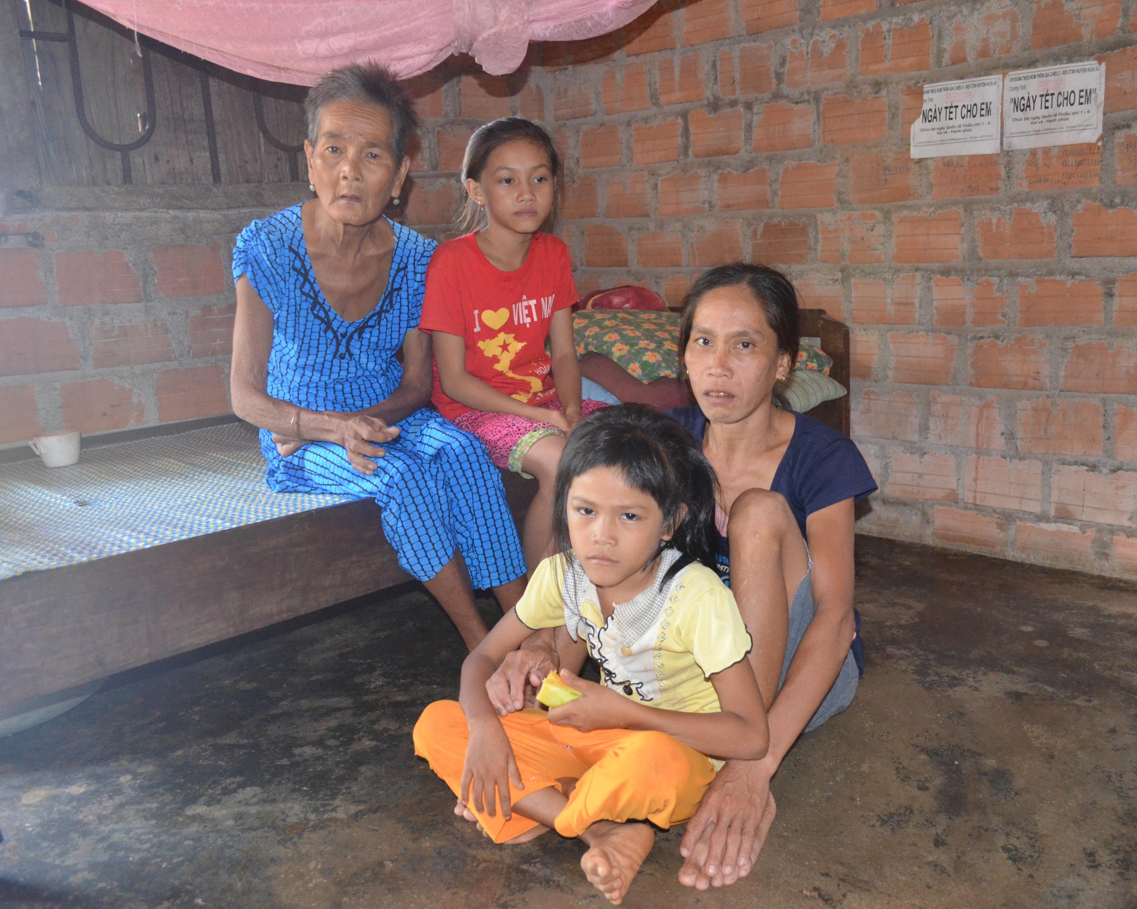 Hôm chúng tôi đến nhà, nhìn hai đứa cháu ngoại và đứa con gái khờ khạo, bà Xê tâm sự: “Tôi cho đến ngày sắp xuống lỗ vẫn chưa hết khổ vì nó. Đẻ con mà có biết gì đâu, cho bú mớm, chăm sóc con bé đều một tay tôi. Tập lần hồi nó cũng biết cách tắm rửa cho mấy đứa bé, đút ăn nhưng con đau nó không biết, đói cũng không hay. Mình cho thì mẹ con nó ăn, không cho thì nhịn”.