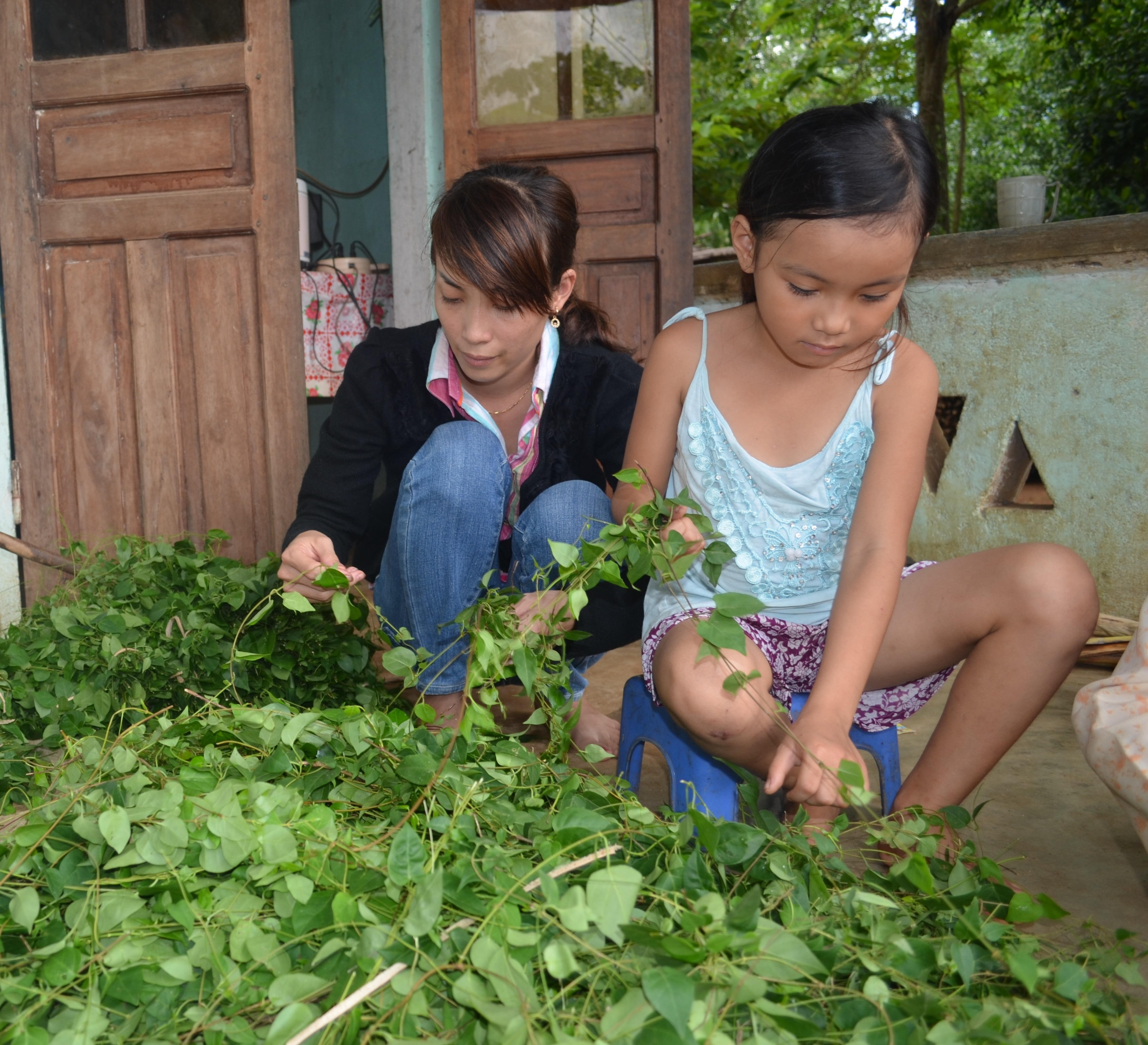 Cùng thôn với chị “Hà khùng”, hoàn cảnh của chị Nguyễn Thị Hữu Duyên (37 tuổi) cũng không kém phần bi đát. Năm 2007, chị Duyên hạ sinh cháu Nguyễn Thị Kiều. Chị sống nhờ những bó lá giang hái trên núi đem xuống chợ bán. Thu nhập ba cọc ba đồng không thể nuôi nổi con, đành nhờ em gái Nguyễn Thị Hiệp nuôi hộ.