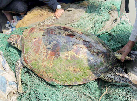 Rùa 'khủng' dính lưới ngư dân Hà Tĩnh