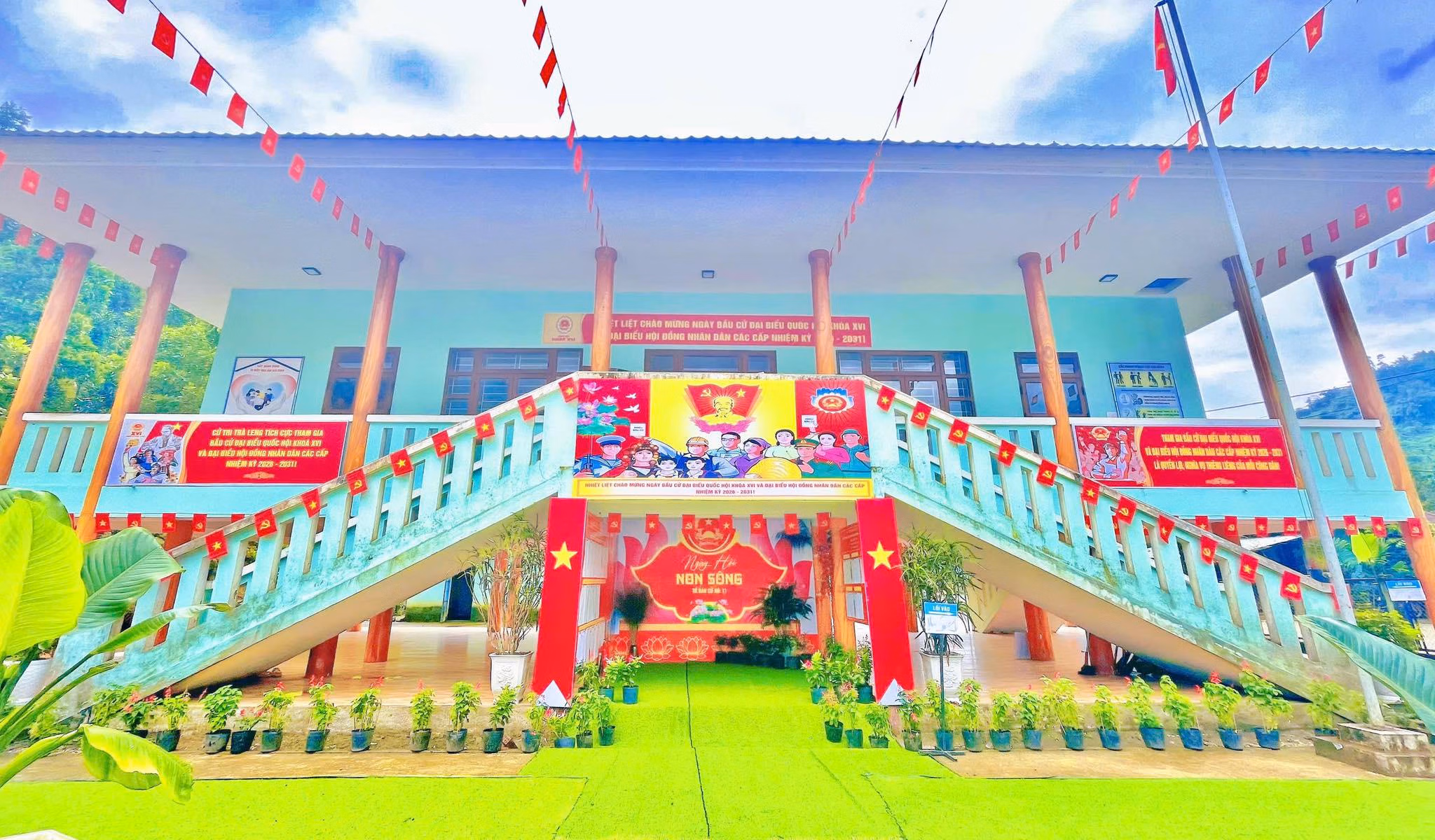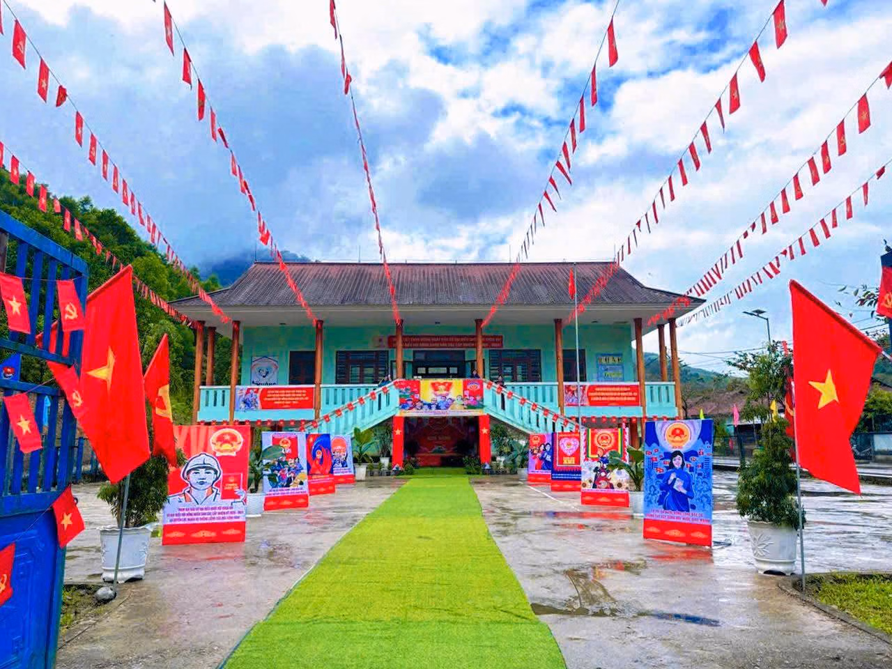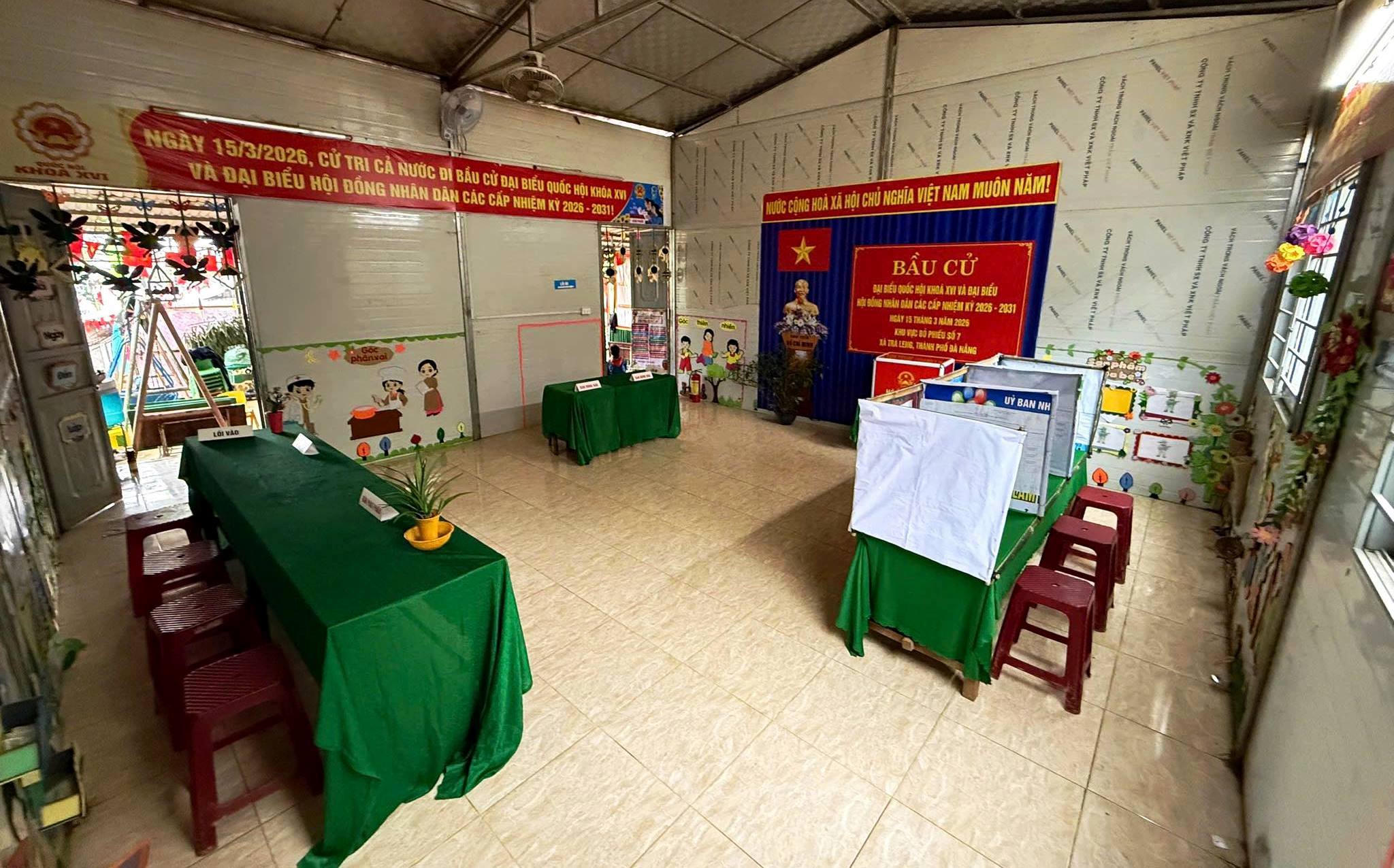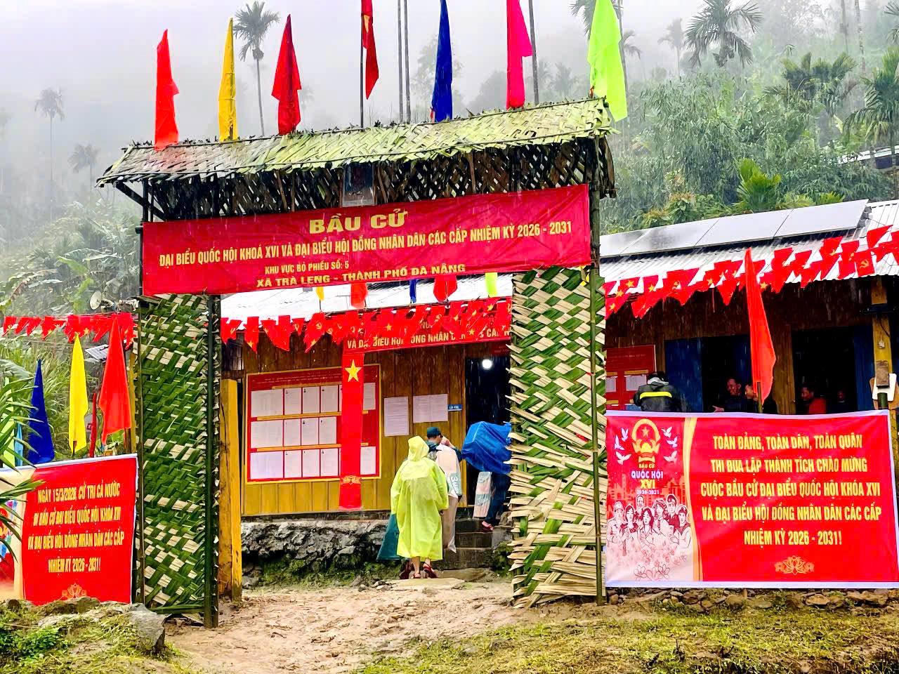 Tại xã miền núi Trà Tân (TP Đà Nẵng), công tác chuẩn bị cho bầu cử đã hoàn tất. Từ trụ sở xã đến các thôn, làng, những điểm bỏ phiếu được trang trí rực rỡ cờ hoa và pano tuyên truyền.