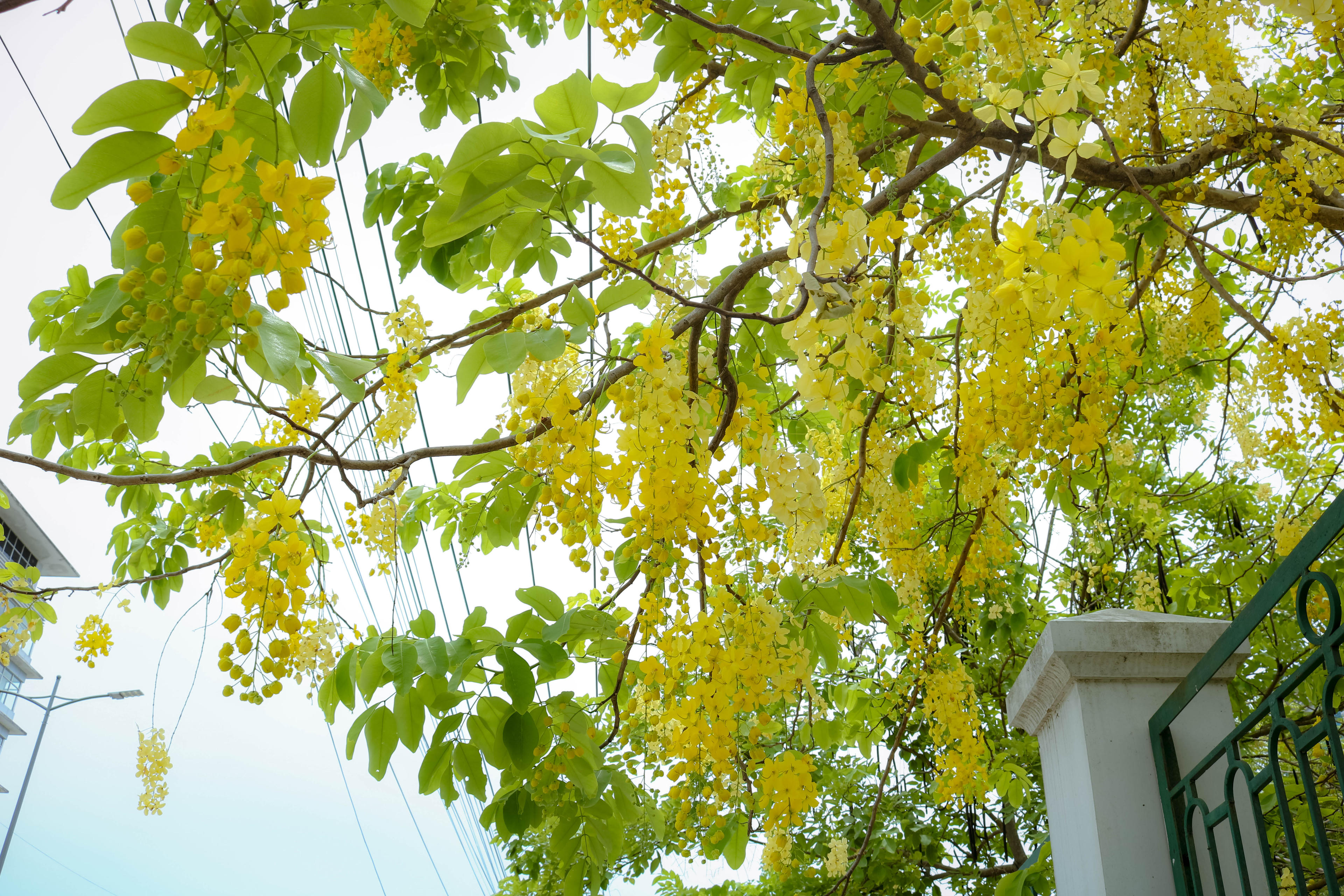 Ở Huế, hoa muồng hoàng yến được trồng dọc theo con đường Kim Long, ngả mình dần về phía sông Hương khiến dòng sông càng trở nên trữ tình.
