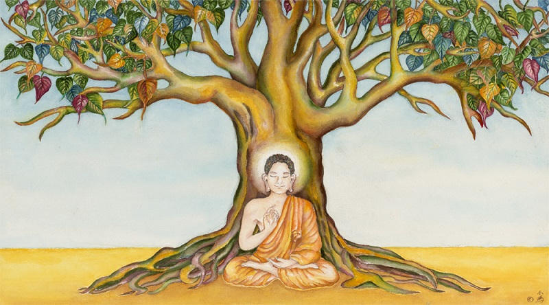 Dưới gốc cây bồ đề, Đức Phật đã giác ngộ được đạo lý nhà Phật và tu thành chính quả. |