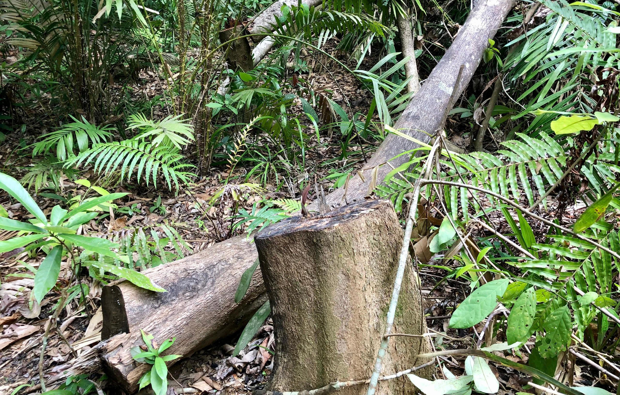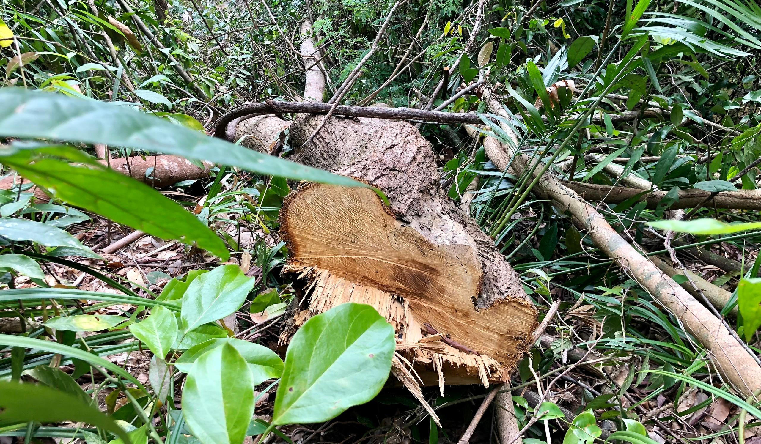 Một số cây gỗ bị khai thác trái phép vết cưa vẫn còn mới. |