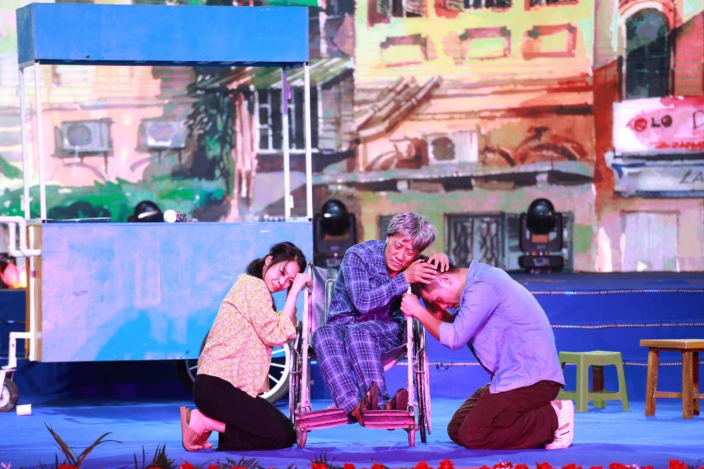Tiểu phẩm "Cha và con" mang thông điệp: Dù bất cứ hoàn cảnh nào, cha mẹ vẫn luôn là người lo lắng, chở che cho các con (ảnh P.V). |