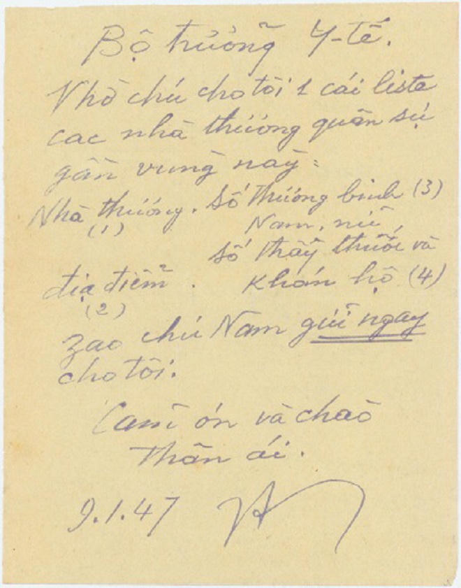 Trong suốt những năm công tác của mình, Chủ tịch Hồ Chí Minh đã nhiều lần gửi thư cho Giáo sư, bác sĩ Hoàng Tích Trý và cấp những vật dụng cần thiết để phục vụ cho công việc. Những món đồ trong bộ sưu tập đều được nguyên Bộ trưởng Bộ Y tế Hoàng Tích Trý cùng gia đình gìn giữ rất cẩn thận suốt gần 70 năm qua.