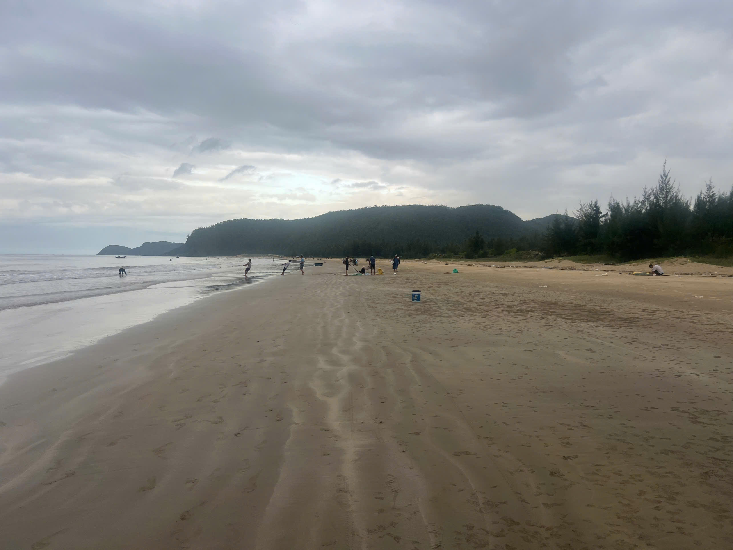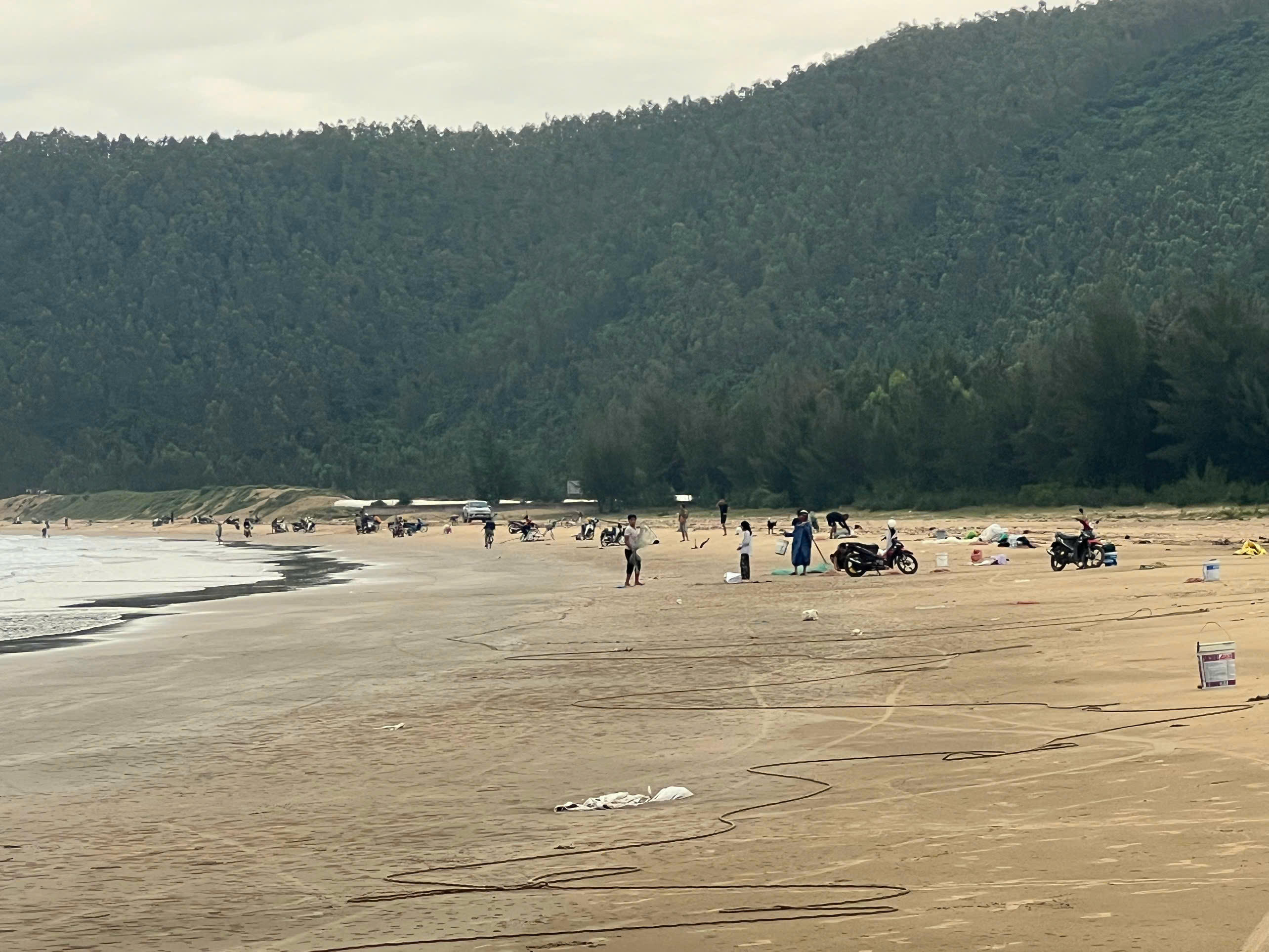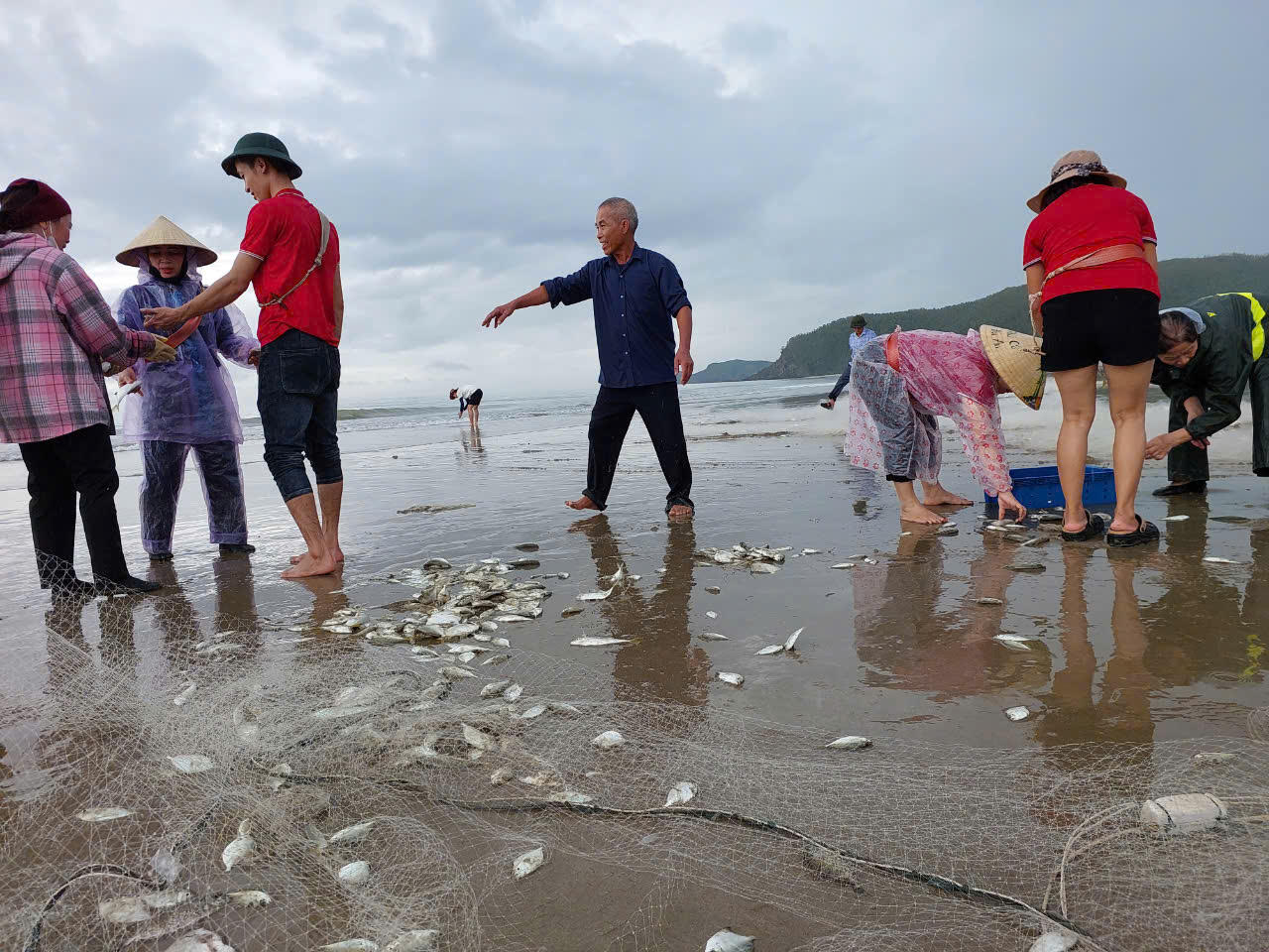 Ngay từ sáng sớm, không khí nhộn nhịp đã bao trùm vùng biển thôn Thọ Sơn (xã Quảng Đông huyện Quảng Trạch, Quảng Bình). Trên vùng biển khoảng 3km, có hàng trăm người trên bờ, dưới biển giăng lưới, đánh bắt cá, ruốc.