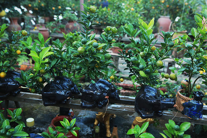 Có lẽ cũng bởi vậy, ý tưởng những chiếc bình gốm trồng quất cảnh được tạo hình những chú trâu vàng, trâu đen trở nên thân thương và quý giá với mỗi gia đình. Đến vựa quất Tứ Liên, bạn dễ dàng gặp “hàng đàn trâu” ngoan hiền đủ các màu sắc, kiểu dáng nhưng đều mang đặc điểm chung là cõng trên lưng cây quất bonsai kiểu dáng, thế độc, lạ. Cây nào cây nấy trĩu trịt quả mọng tròn, mơn mởn chồi non lộc biếc.