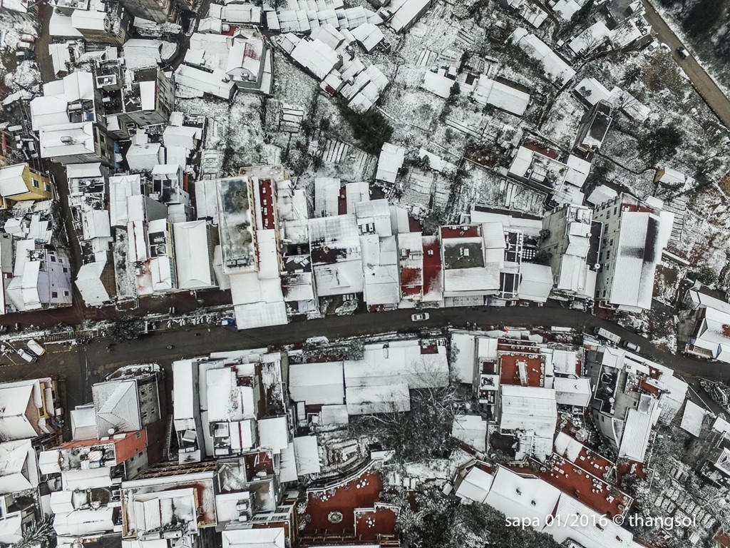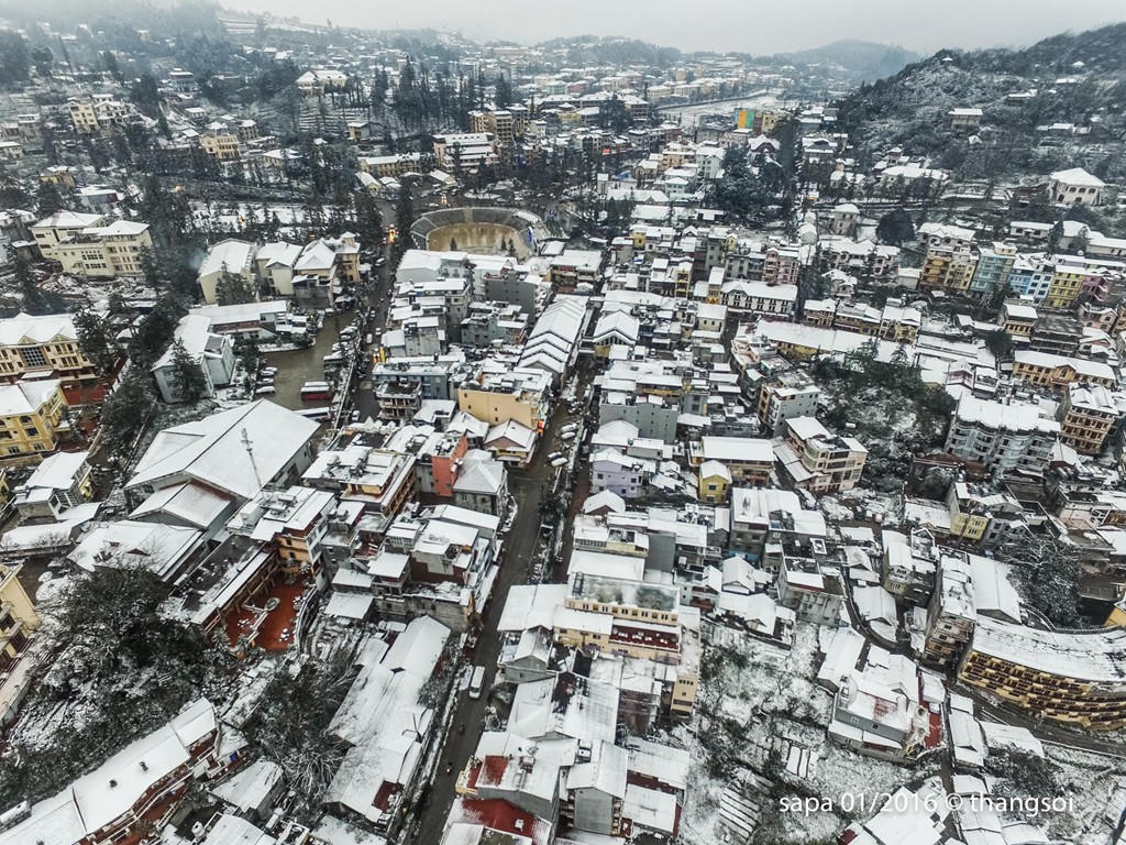 Sa Pa chìm trong tuyết nhìn từ camera bay
