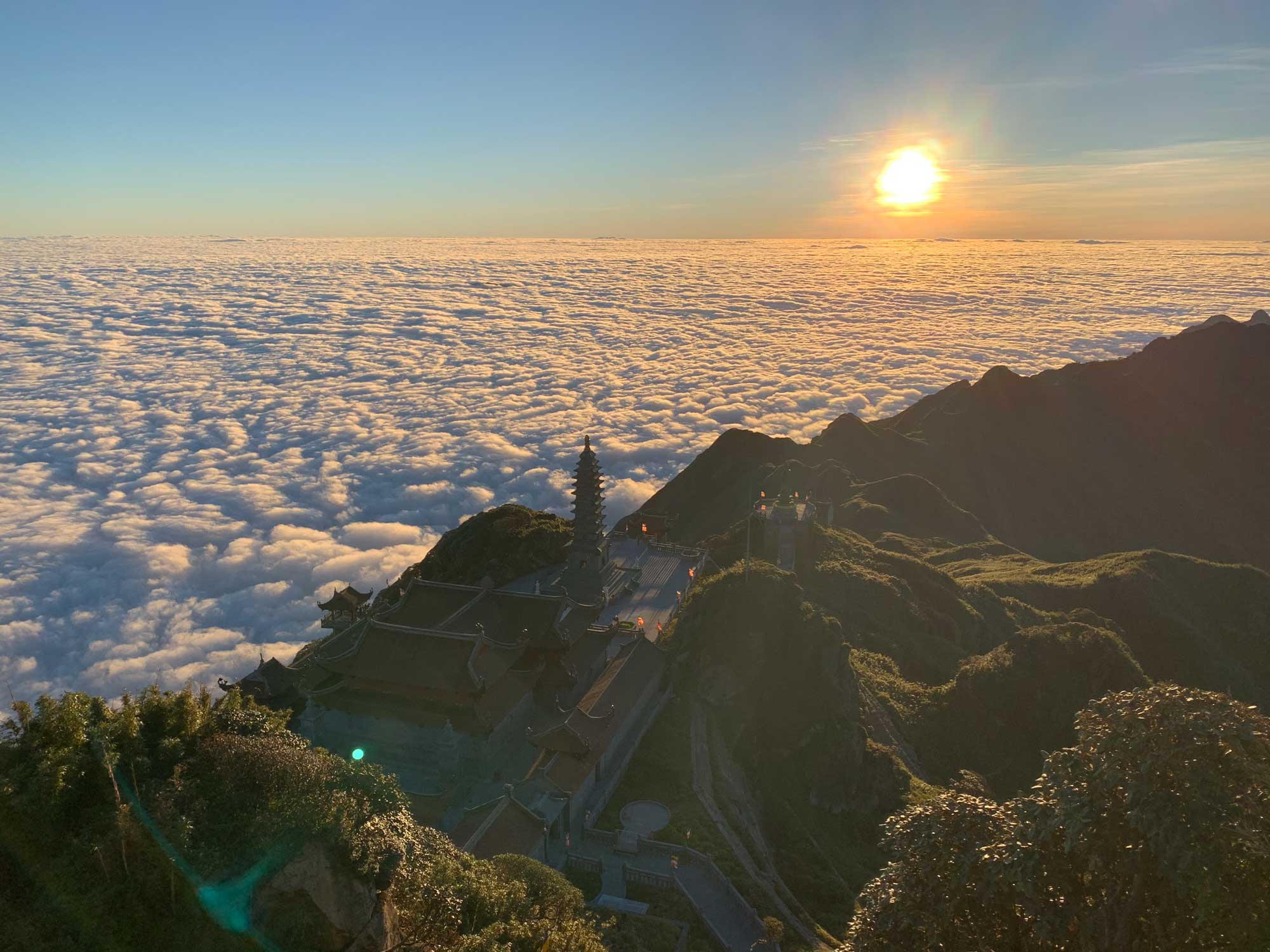 Nhưng theo những “khách quen” của du lịch Sa Pa thì thời điểm ngắm biển mây đẹp nhất trên đỉnh Fansipan lại là lúc hoàng hôn. Khi đó ánh mặt trời như nhuộm cả biển mây thành màu vàng cam rực rỡ, rồi chuyển dần sang hồng tím, đẹp khó tả bằng lời.