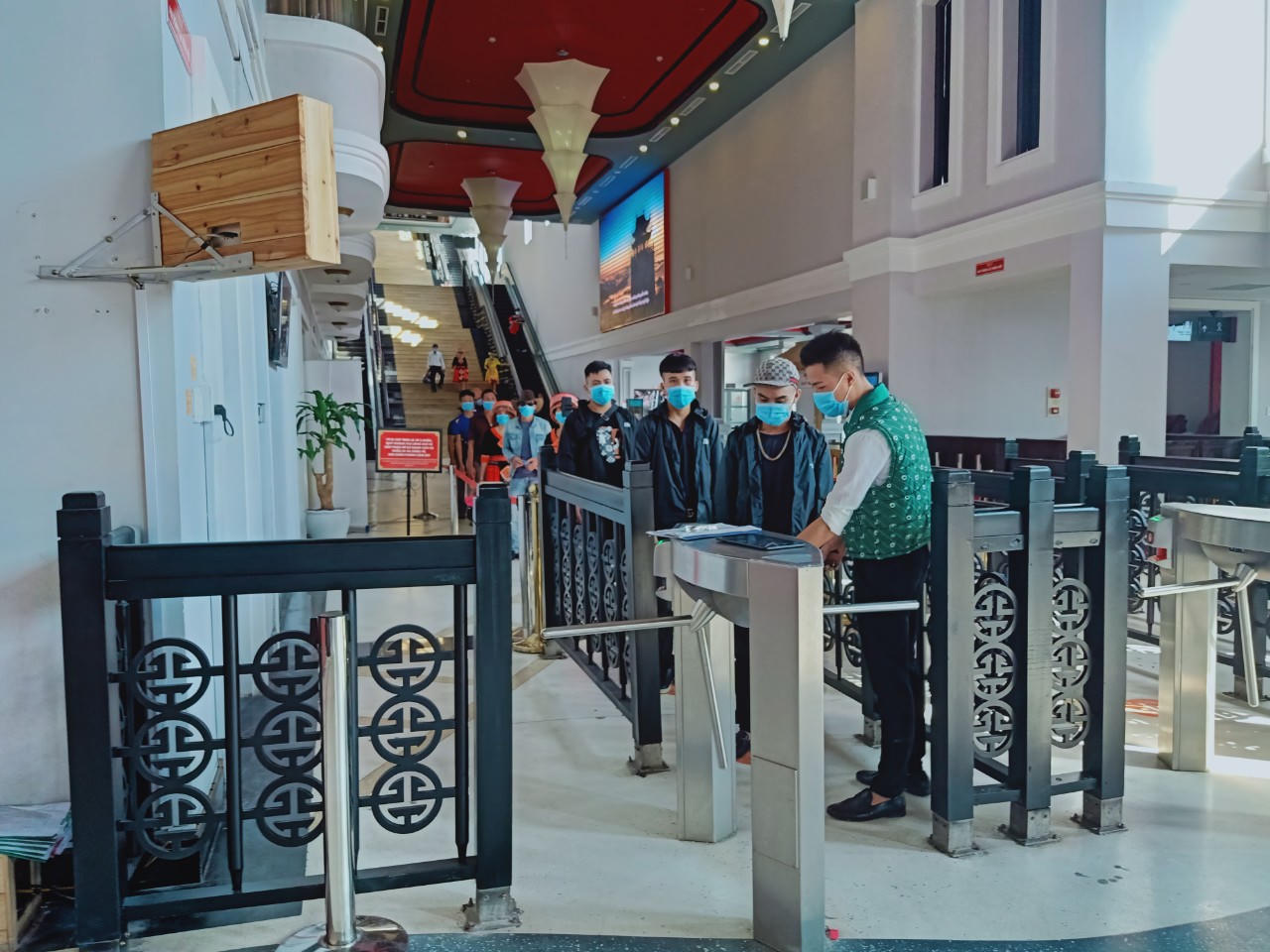 Có mặt tại ga đi cáp treo Fansipan từ sáng sớm, chúng tôi đã thấy một hàng dài du khách đứng xếp hàng lên cáp. Được biết, khu du lịch (KDL) Sun World Fansipan Legend mới mở cửa trở lại từ ngày 1/10 sau gần 1 tháng bảo trì cáp treo, và đang áp dụng chương trình kích cầu “Yêu Việt Nam” rất hấp dẫn: tặng vé buffet trưa trị giá 200.000 đồng khi mua vé cáp treo lên đỉnh Fansipan, hoặc tặng vé khứ hồi tàu hoả Mường Hoa trị giá 100.000 khi mua vé buffet trưa trong tất cả các ngày trong tuần từ nay đến hết tháng 12.2020. Đây là một trong những lý do khiến du khách phấn khích chọn tới Fansipan lúc này.