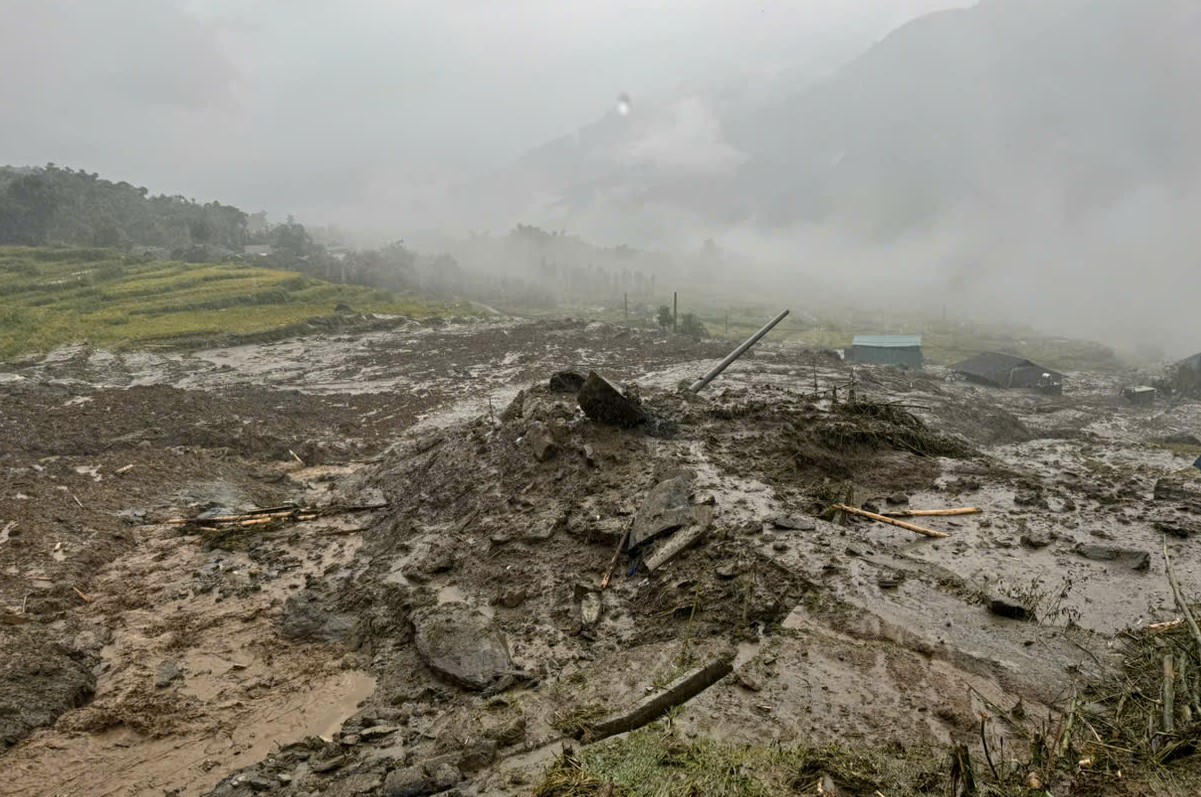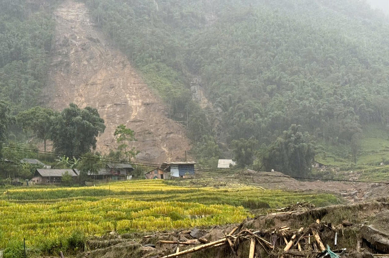 Do lượng mưa lớn, úng nước từ ngày 07/9, đến khoảng 13h00’ ngày 08/9/2024 đã xảy ra sạt lở lớn từ trên núi cao tràn xuống khu vực dân cư, tràn ruộng và tràn ra đường xuống suối Mường Hoa vùi lấp 4 ngôi nhà tại xã Mường Hoa, thị xã Sa Pa.