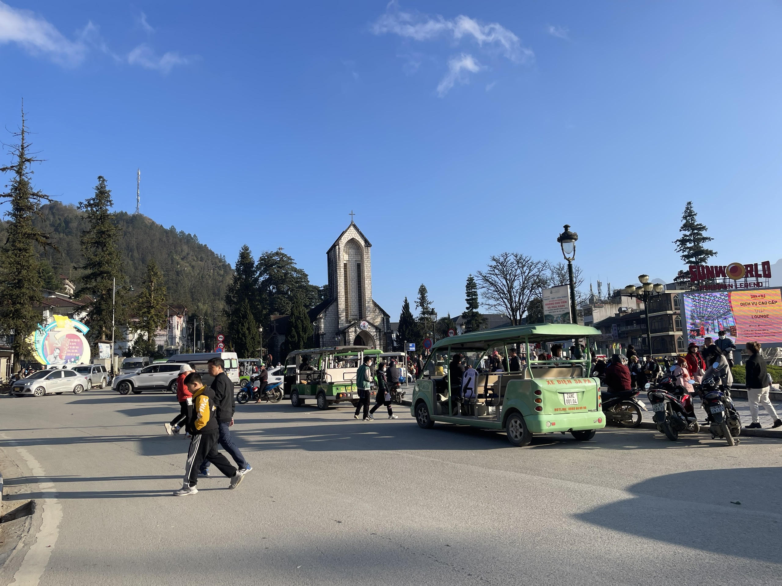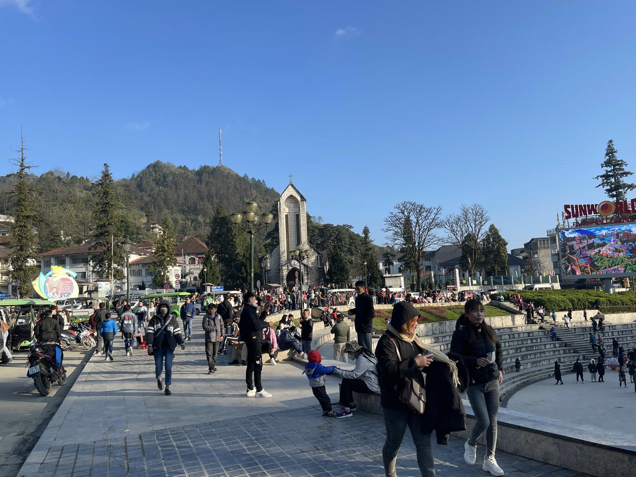 Các điểm check-in nổi tiếng tại Sapa như nhà thờ đá, quảng trường, ga tàu điện, Bản cát cát tập trung khá đông khách du lịch đến đây thăm quan, chụp ảnh