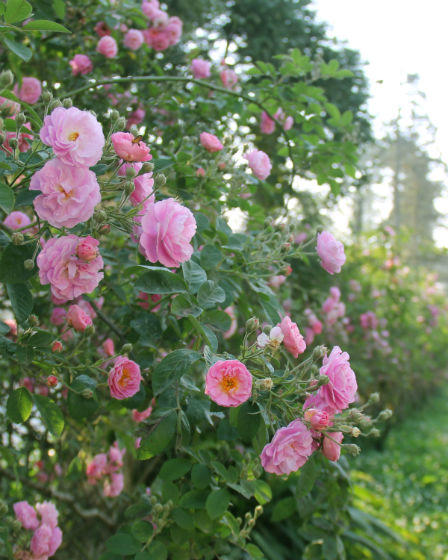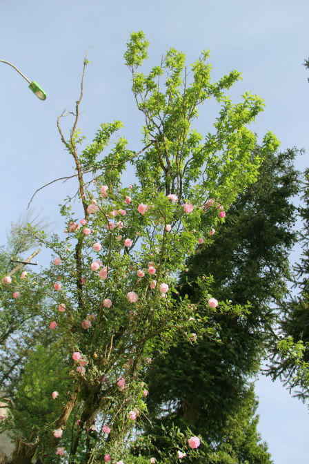 Và chỉ qua vài cái chớp mắt, hoa hồng leo đã nở bung như những đám mây hồng mang hương tràn xuống phố. Đấy là lúc xuân đã tàn, hạ sắp sang.