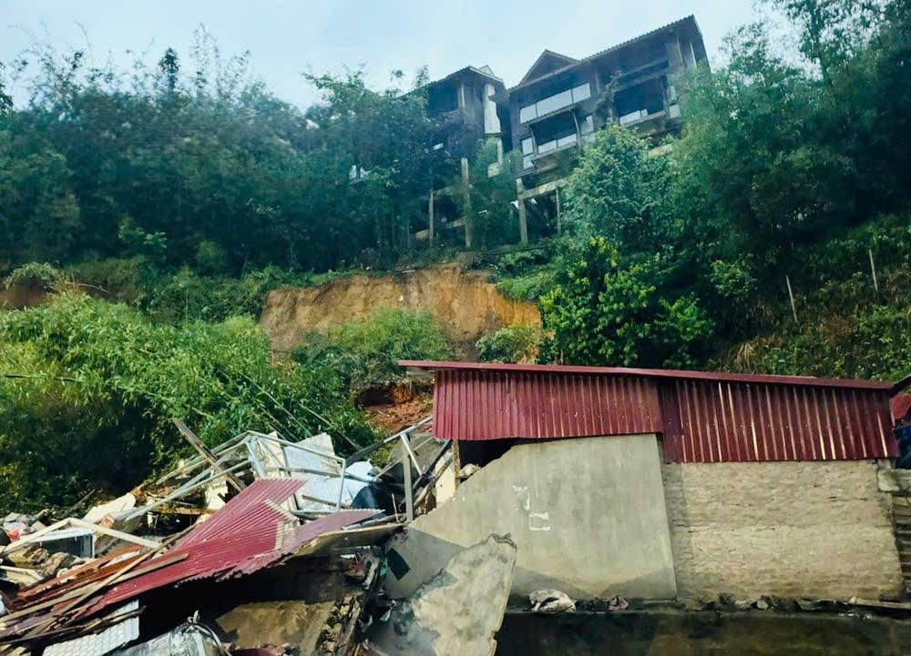 Vụ sạt lở đã làm 01 người chết, căn nhà bị sập hoàn toàn |