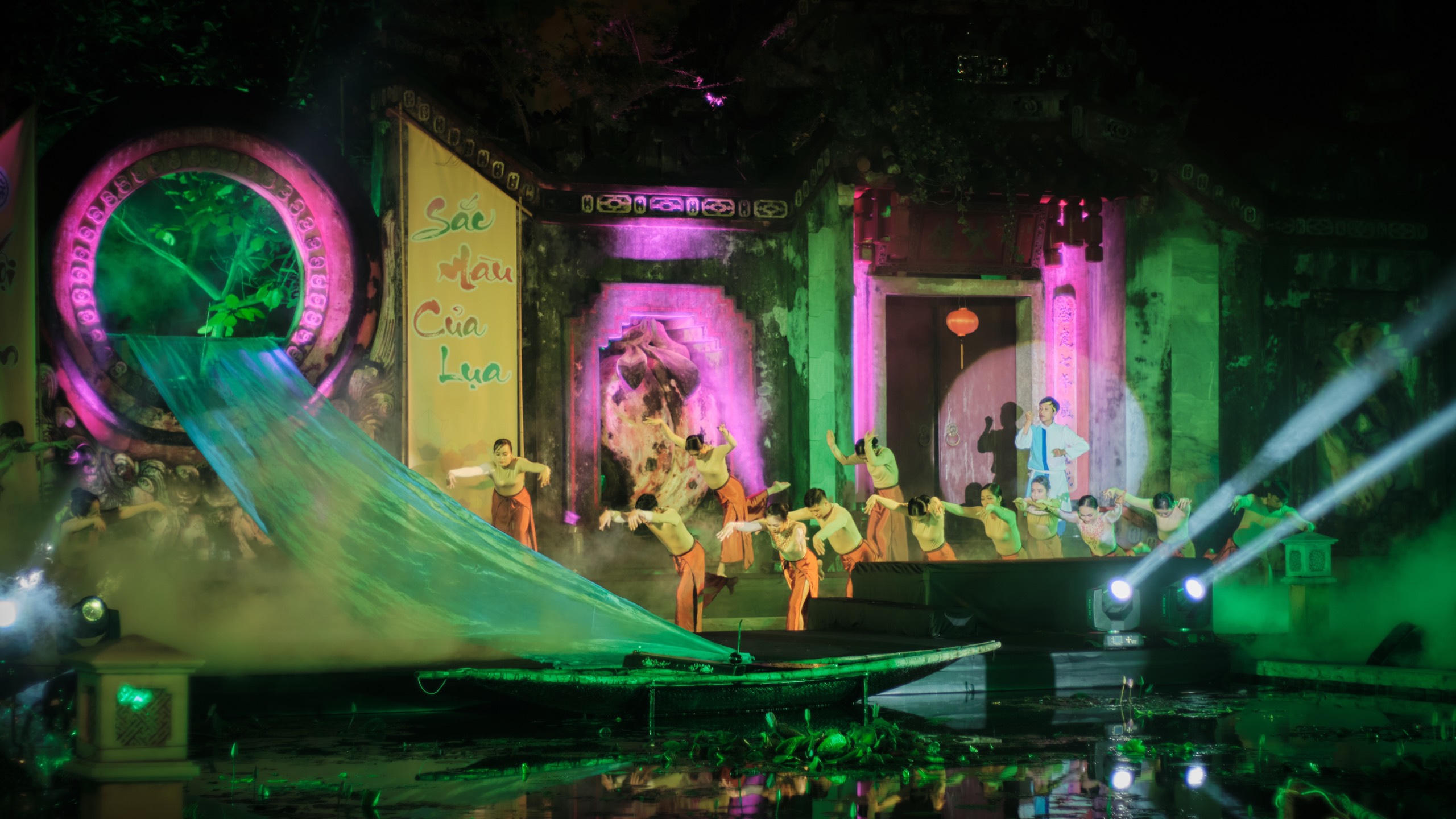 Tại đây, du khách, khán giả đã được nghe kể những câu chuyện về dòng sông mẹ Thu Bồn mang nặng phù sa tạo nên những nương dâu tươi tốt; câu chuyện Tằm Tang rút ruột nhả tơ tô đậm cung sắc cho bức tranh làng quê tươi đẹp. Hay câu chuyện về những sản phẩm lụa ra đời từ niềm đam mê và sự hăng say lao động của người dân xứ Quảng, được xuôi ngược trong và ngoài lãnh thổ Việt Nam. Những hình ảnh tuyệt vời ấy được tái hiện trong không gian đầy hoài niệm của chương trình “Hội An - Sắc màu của lụa”.