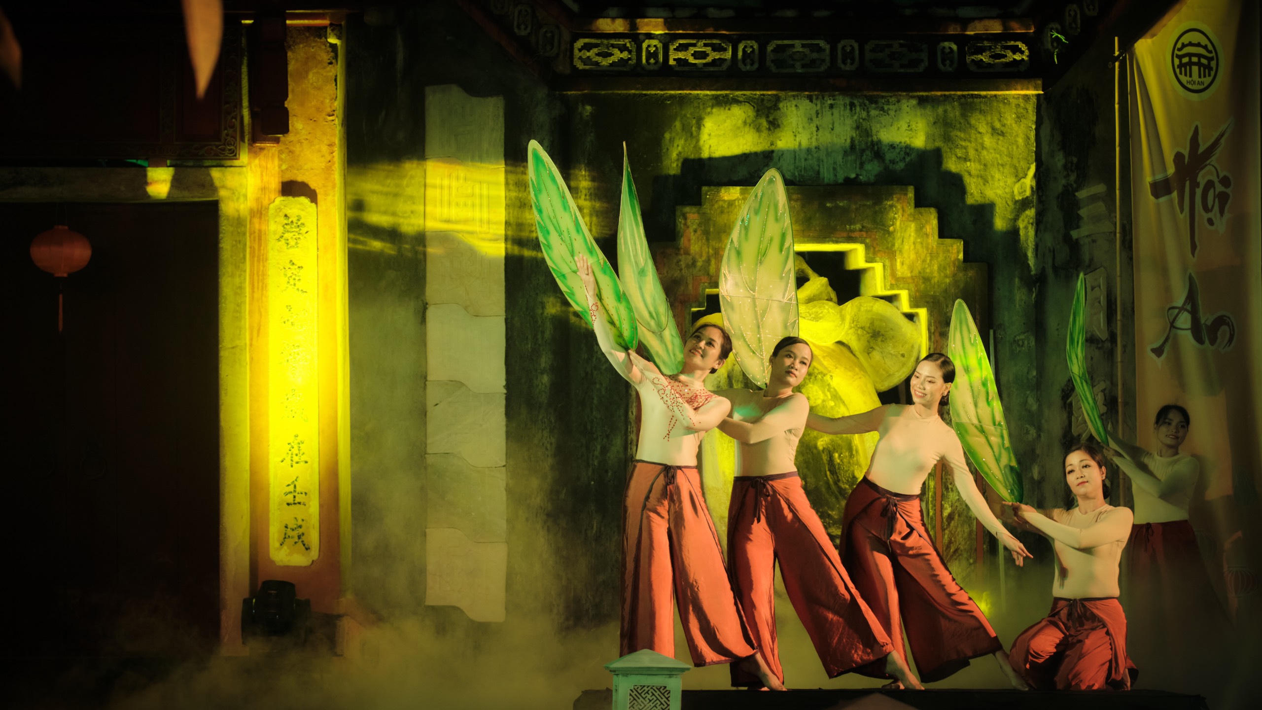 Thiếu nữ Hội An đẹp đằm thắm trình diễn trong đêm “Hội An - Sắc màu của lụa”. |