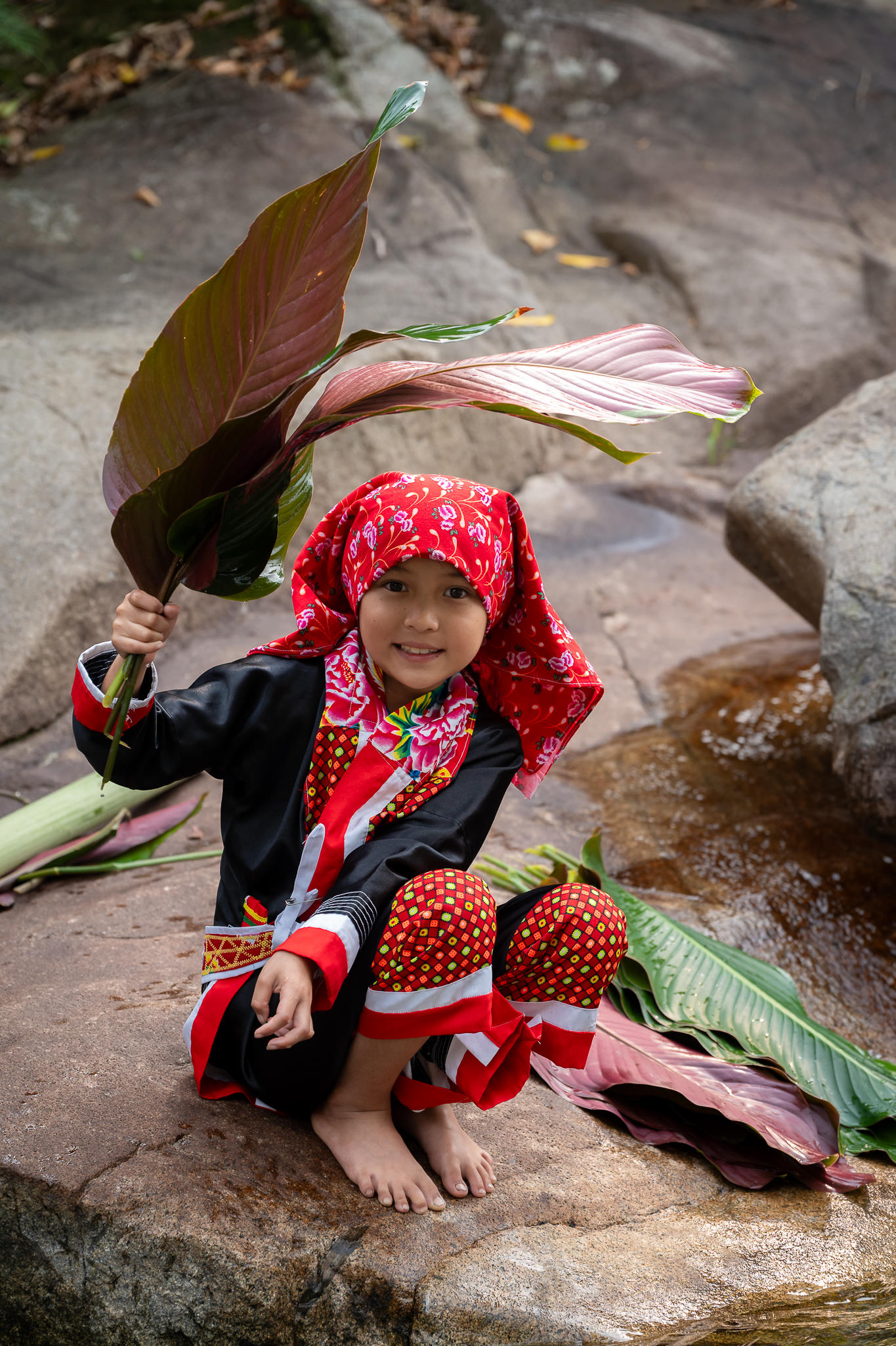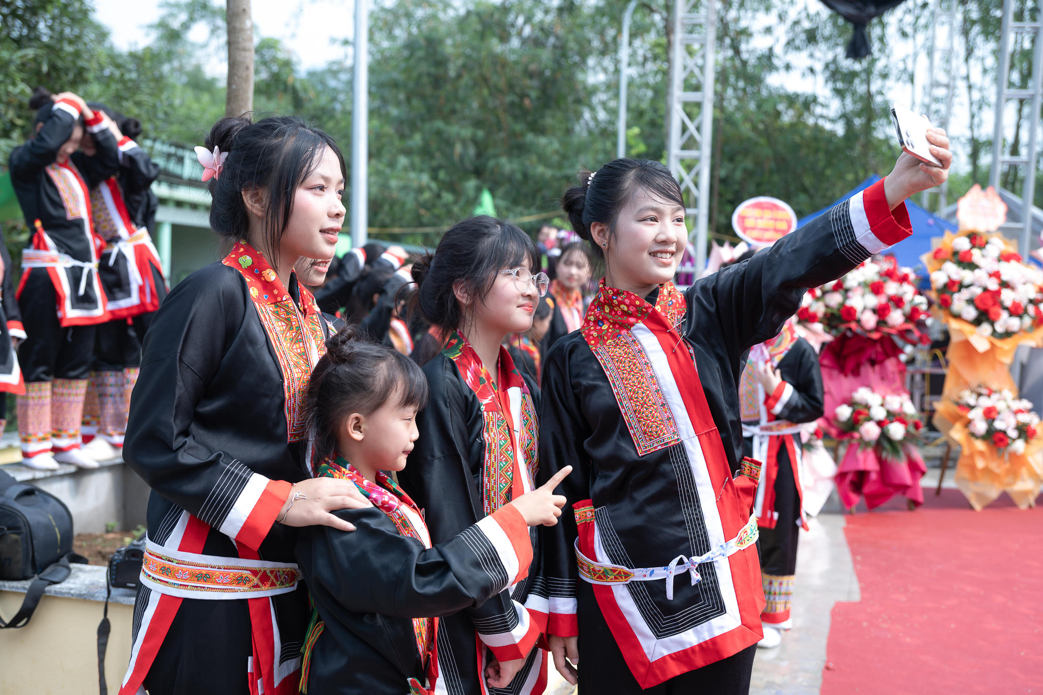 Không chỉ người lớn, trẻ em Dao cũng được cha mẹ hướng dẫn mặc trang phục truyền thống từ nhỏ. Hình ảnh các em nhỏ trong những bộ quần áo rực rỡ, hòa mình vào không khí lễ hội, cho thấy sự tiếp nối tự nhiên của văn hóa qua các thế hệ. Trang phục không đơn thuần là quần áo, mà là “ký ức sống”, là cách cộng đồng gìn giữ và truyền lại bản sắc.