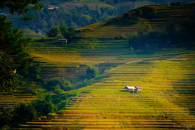 Đến Mù Cang Chải những ngày này, đặc biệt là những ngày nắng đẹp, bạn sẽ được chiêm ngưỡng một cảnh quan thiên nhiên mỹ lệ, khi từng bậc lúa chín như tỏa sáng dưới ánh nắng chiều rực rỡ.