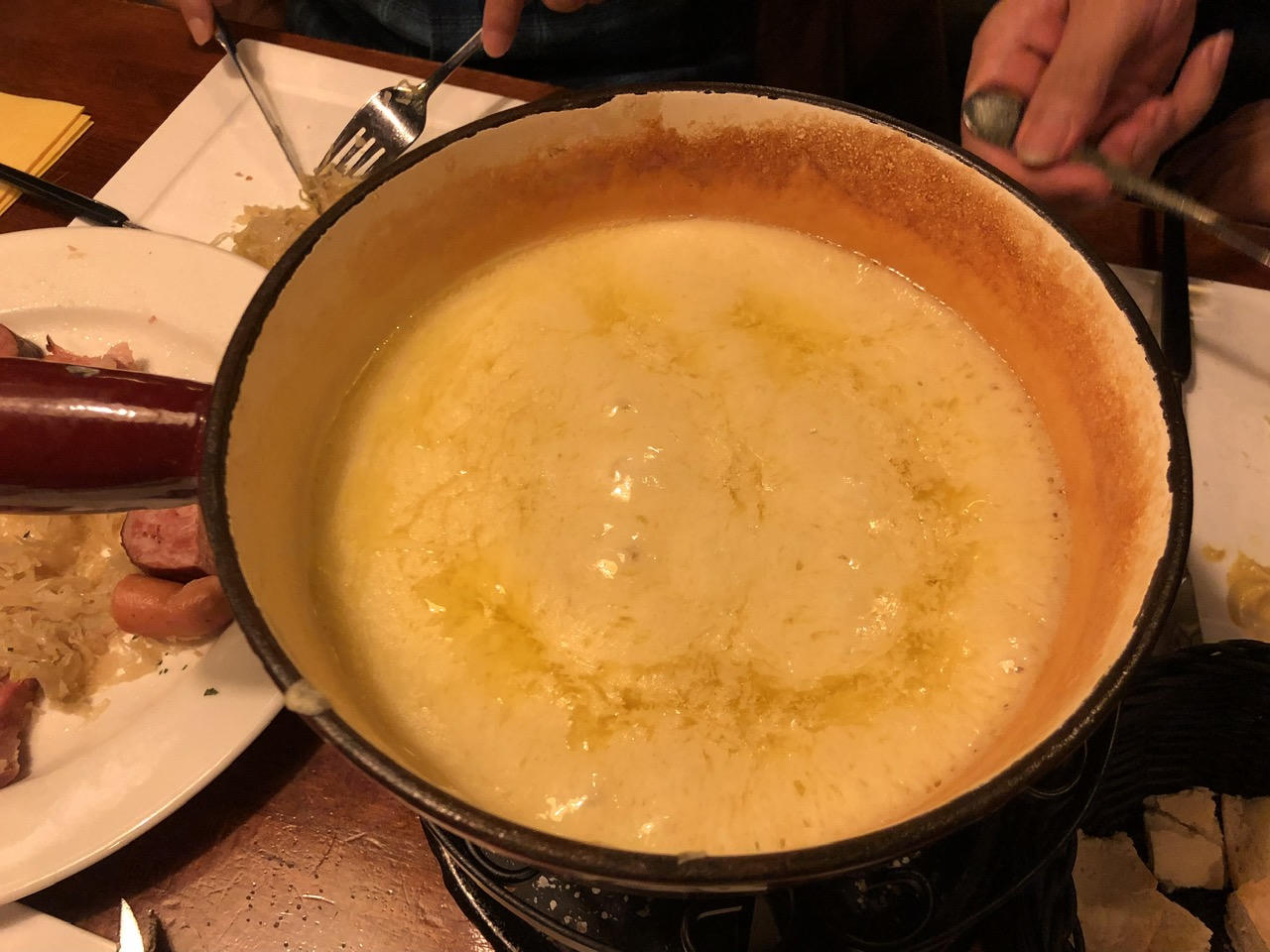 Cùng với bánh ga-tô quét bơ, socola thì một khi đã đến Thụy Sỹ, ít người có thể bỏ qua món cheese fondue (lẩu phô mai), món ăn đặc trưng trong ẩm thực Thụy Sỹ. Đây là một món ăn ngon, hấp dẫn và là một trong những món khoái khẩu của người dân nơi đây. Món ăn gồm các nguyên liệu đơn giản như phô mai, tỏi, rượu vang trắng, bột bắp cùng rượu kirsch sau đó được đem đun nóng và ăn cùng với bánh mỳ. Nhưng tôi lại phải cảnh báo rằng nếu không hấp thu được nhiều lượng bơ, sữa trong một bữa thì bạn đừng bao giờ dại dột thử món này - cứ gọi là “ăn một lần nhớ một đời”…