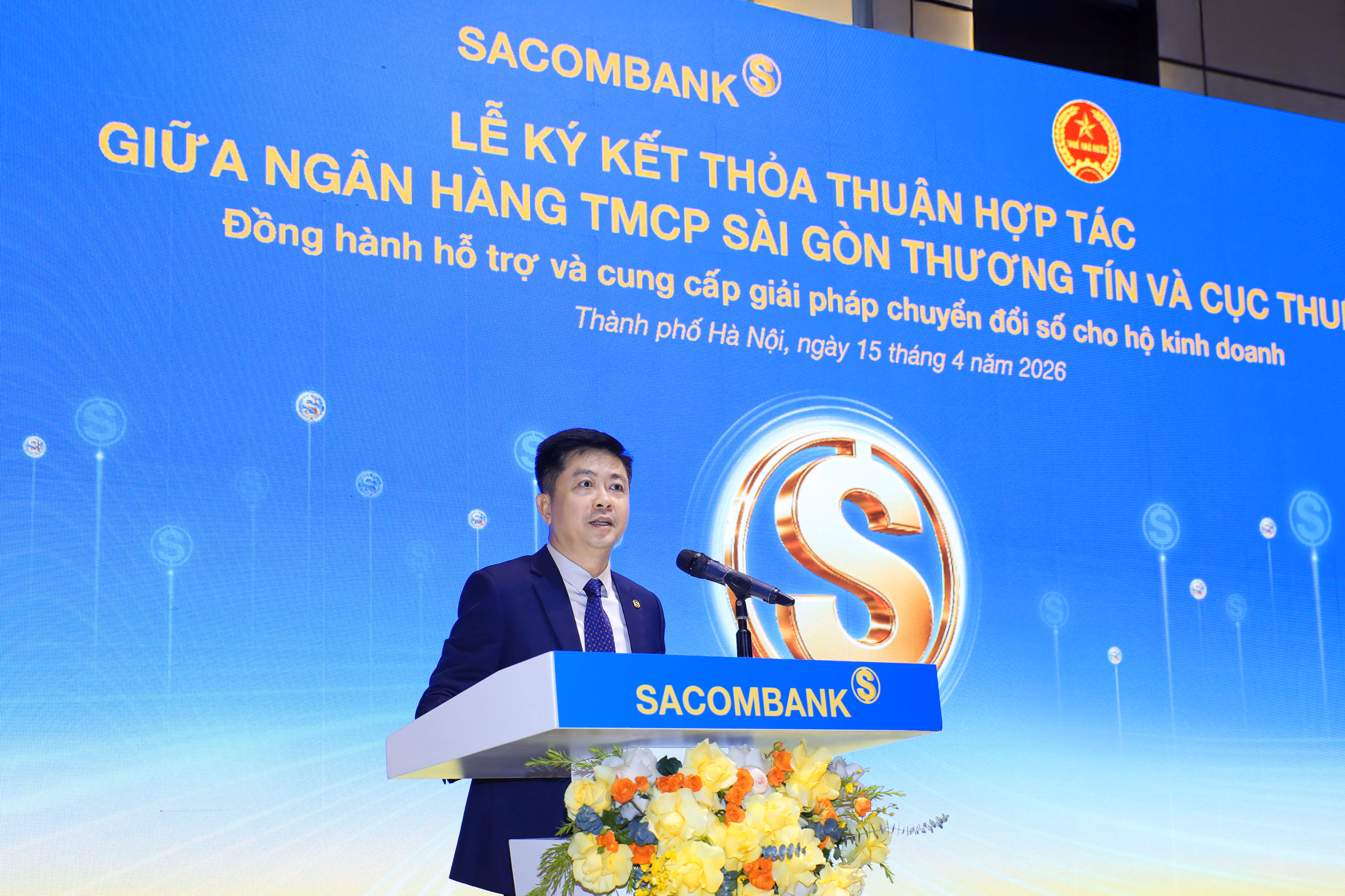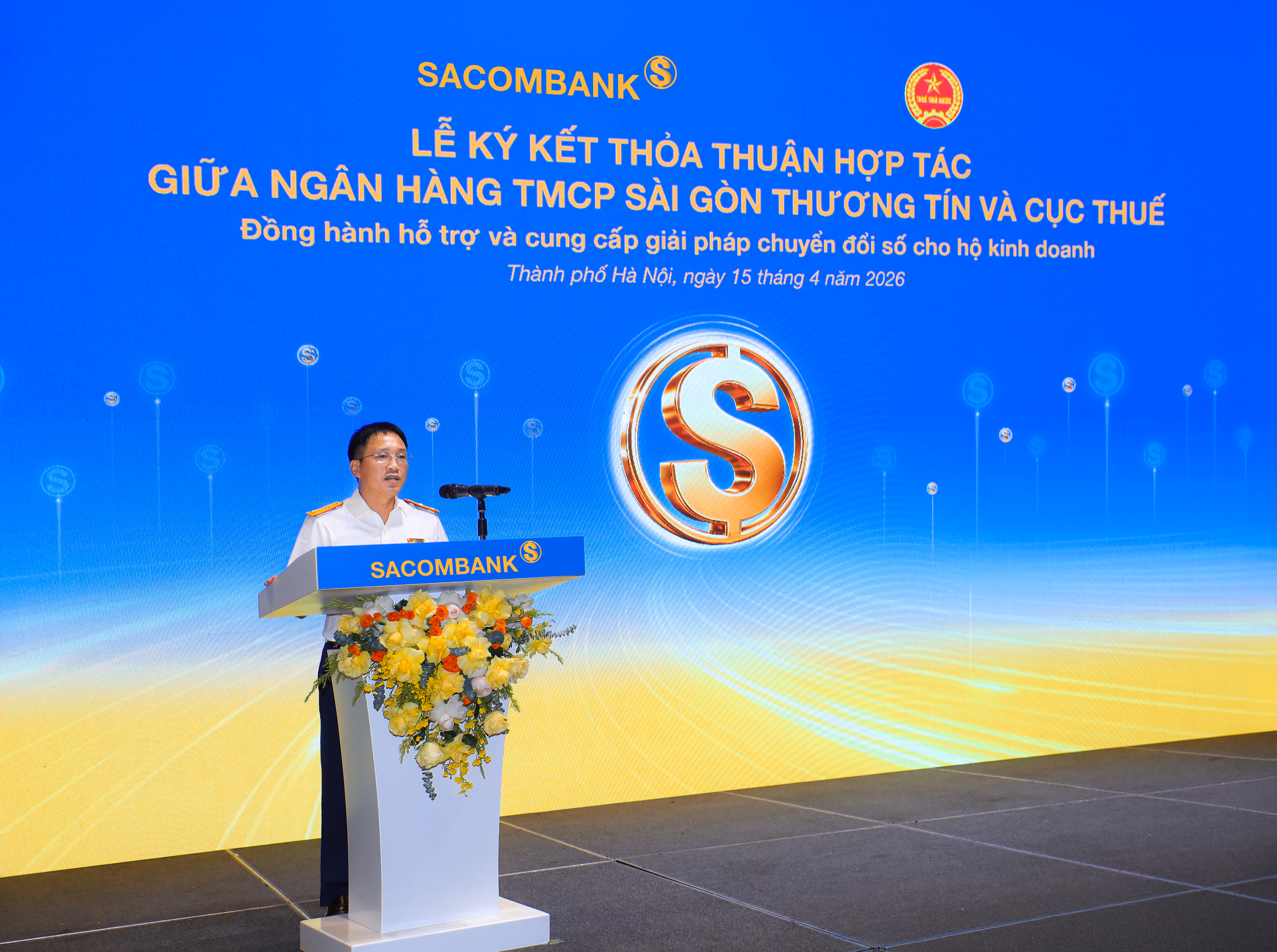 Ngày 15/4/2026, Ngân hàng TMCP Sài Gòn Thương Tín (SACOMBANK) ký kết hợp tác cùng Cục Thuế - Bộ Tài chính và cơ quan thuế tại 14 tỉnh, thành phố nhằm triển khai các giải pháp hỗ trợ hộ kinh doanh trong quản lý doanh thu, xuất hóa đơn điện tử, kê khai và nộp thuế.