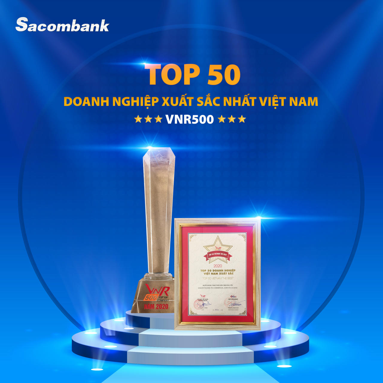 Ngày 08/01/2021, tại lễ tôn vinh Top 500 doanh nghiệp lớn nhất nhất Việt Nam (VNR500) năm 2020 do Công ty cổ phần Báo cáo Đánh giá Việt Nam (Vietnam Report) và báo Vietnamnet phối hợp tổ chức, Sacombank được vinh danh trong Top 50 doanh nghiệp xuất sắc nhất Việt Nam vì đã đạt hiệu quả cao trong hoạt động kinh doanh, tốc độ tăng trưởng tốt, không ngừng mở rộng mạng lưới và đóng góp tích cực vào ngân sách Nhà nước cũng như tích cực kết nối với cộng đồng - xã hội.