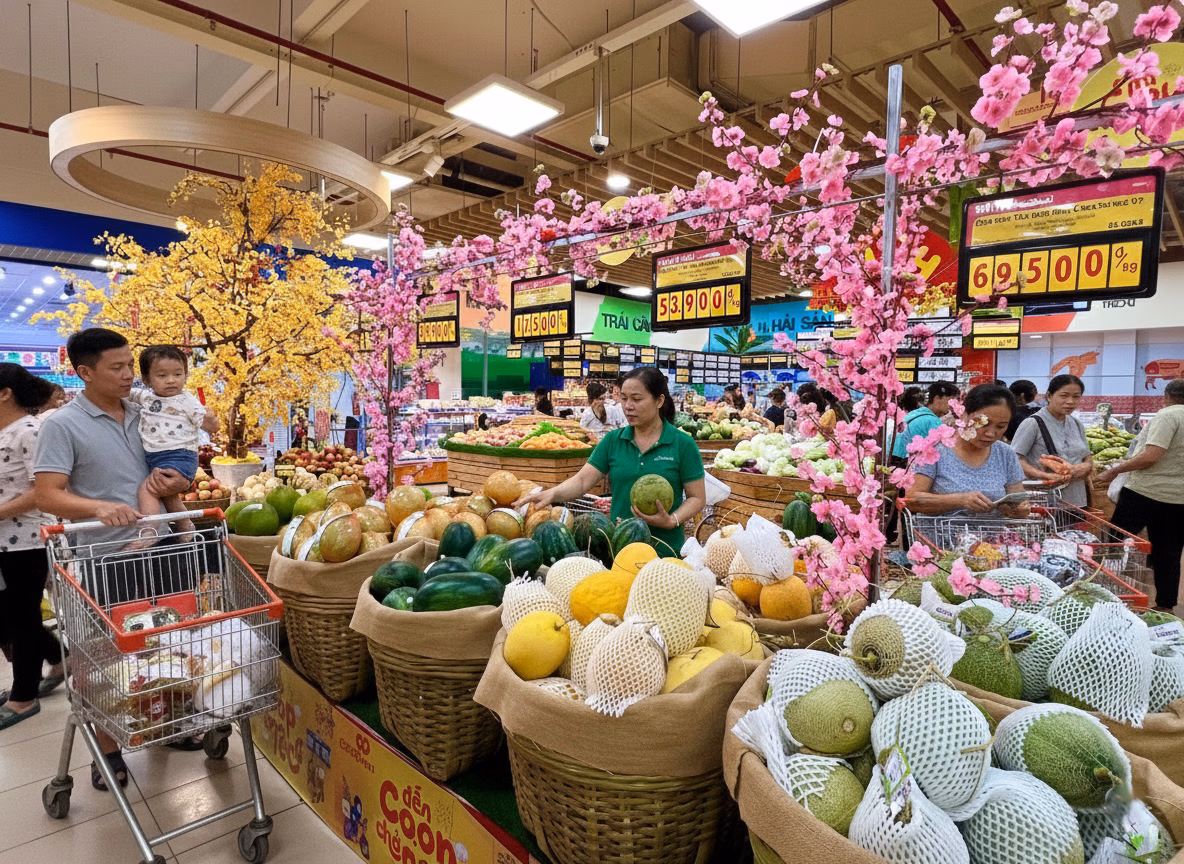 Thực phẩm tươi sống tiếp tục là nhóm hàng chủ lực với mức giảm luân phiên đến 30% cho các mặt hàng thiết yếu như cá, thịt, rau củ và trái cây. Đặc biệt, Lễ hội rau củ quy tụ nông sản Việt đạt chuẩn VietGAP, Tick xanh trách nhiệm, mang đến nhiều lựa chọn xanh – sạch – giá ổn định cho bữa cơm ngày Tết.